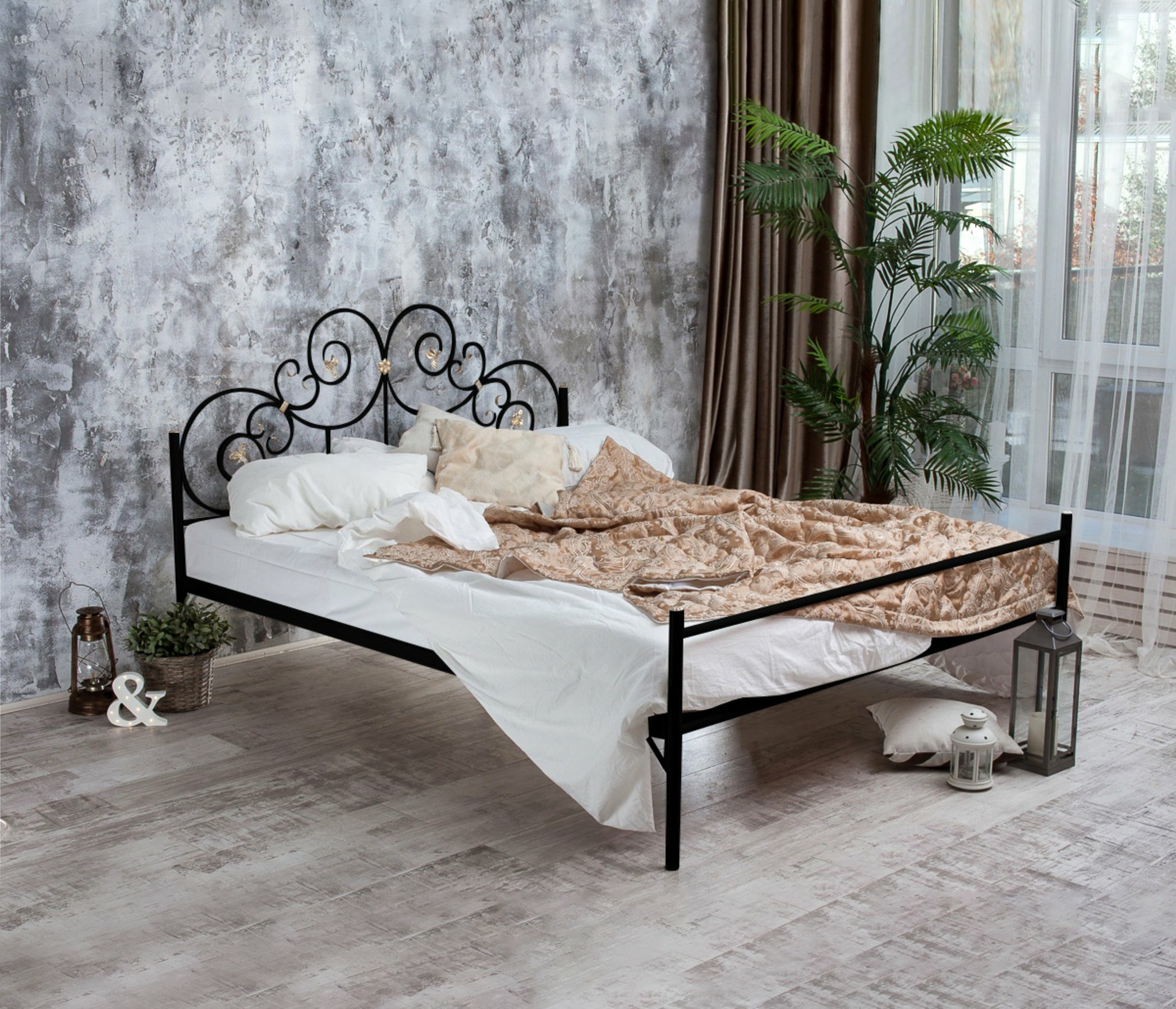 Роскошное оформление изголовья и изножья, кристально чистый белый или благородно черный цвет и легкость и воздушность конструкции сделают ее настоящим украшением спальной комнаты как в современной, так и в классической стилистике.