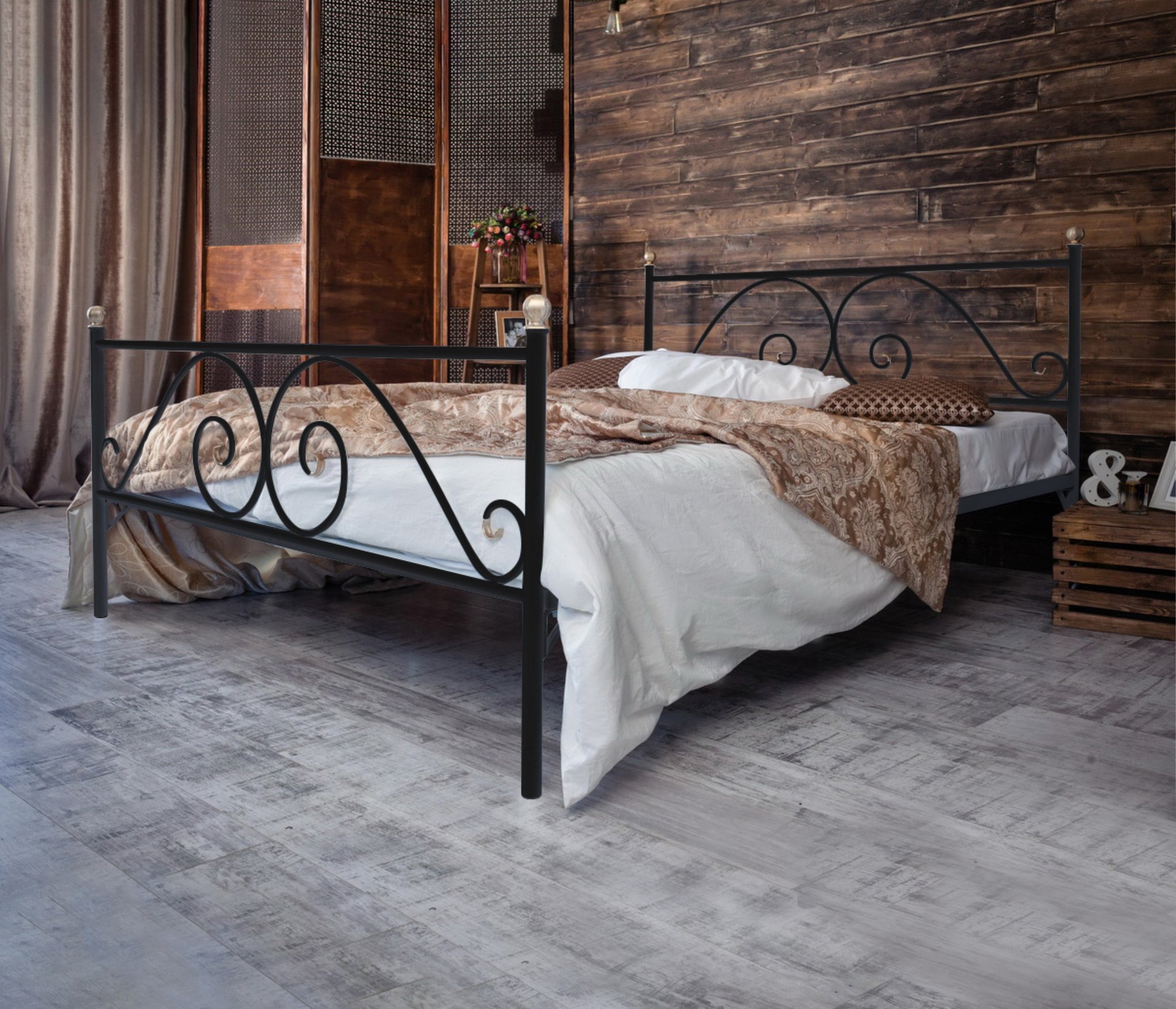 Кованая кровать Анталия - стильная, изысканная модель с облегченной конструкцией, в которой надежность и изящество ручной ковки сочетаются с качественными и проверенными временем материалами производства.