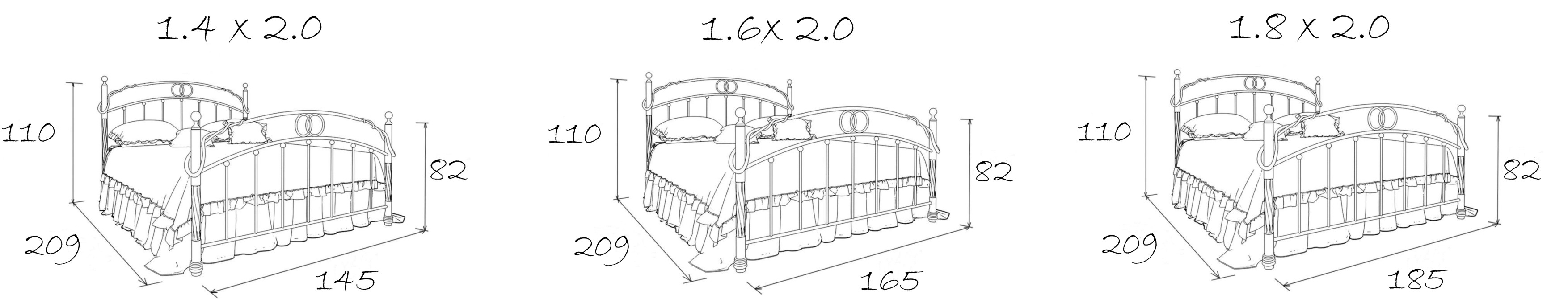 Размеры спального места (ДхШ) 2000х2000, высота изножья 820, мммаксимальная нагрузка на 1 спальное место - 150 кг.