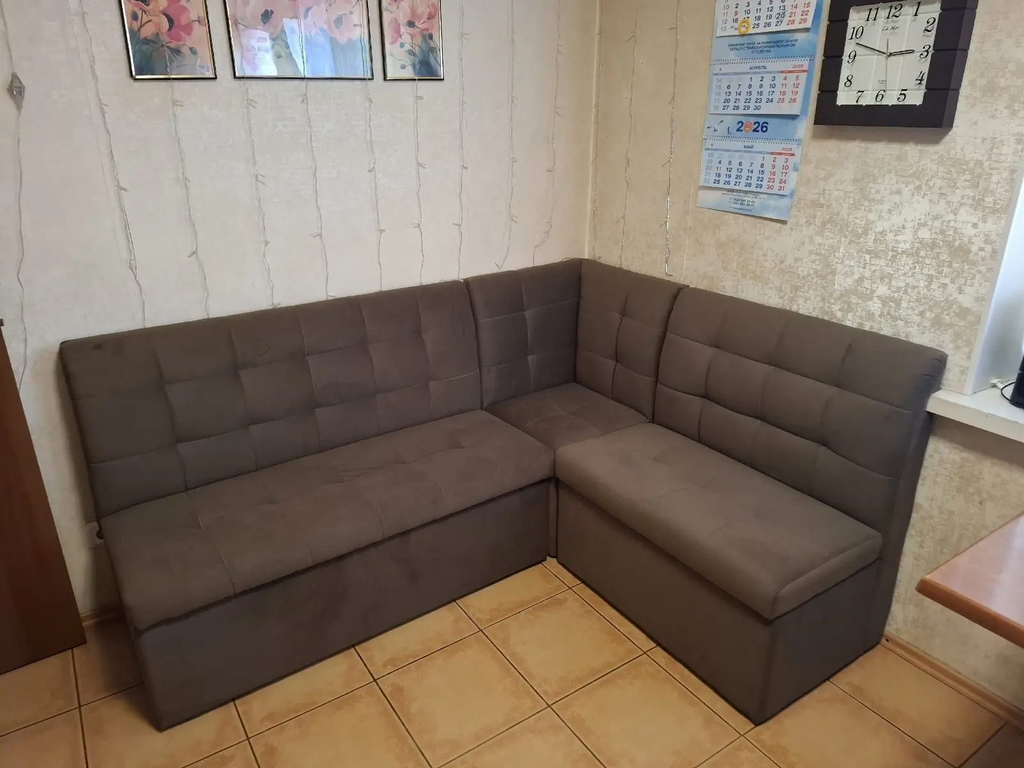 Кухонный уголок выполнен в микровелюре с отличными техническими характеристика. Обивка легко чистится влажным и сухим способом, при этом не теряет своих свойств.