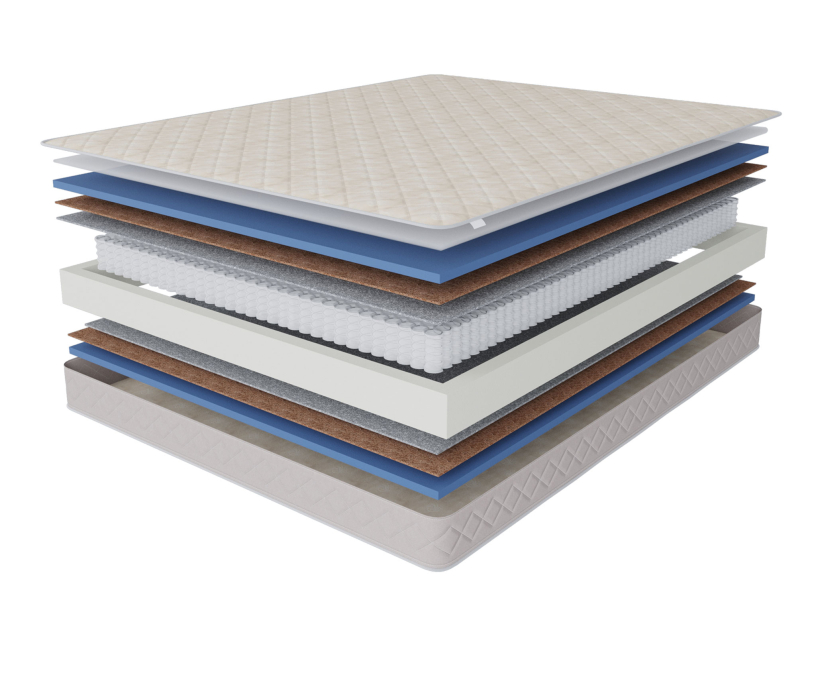 Это классическая конструкция матраса, универсальный блок пружин с точечной поддержкой, термоволокно, которое защитит комфортные слои от соприкосновения с пружинами и соответственно истерания. Слои кокоса добавят необходимой жесткости и прочности.