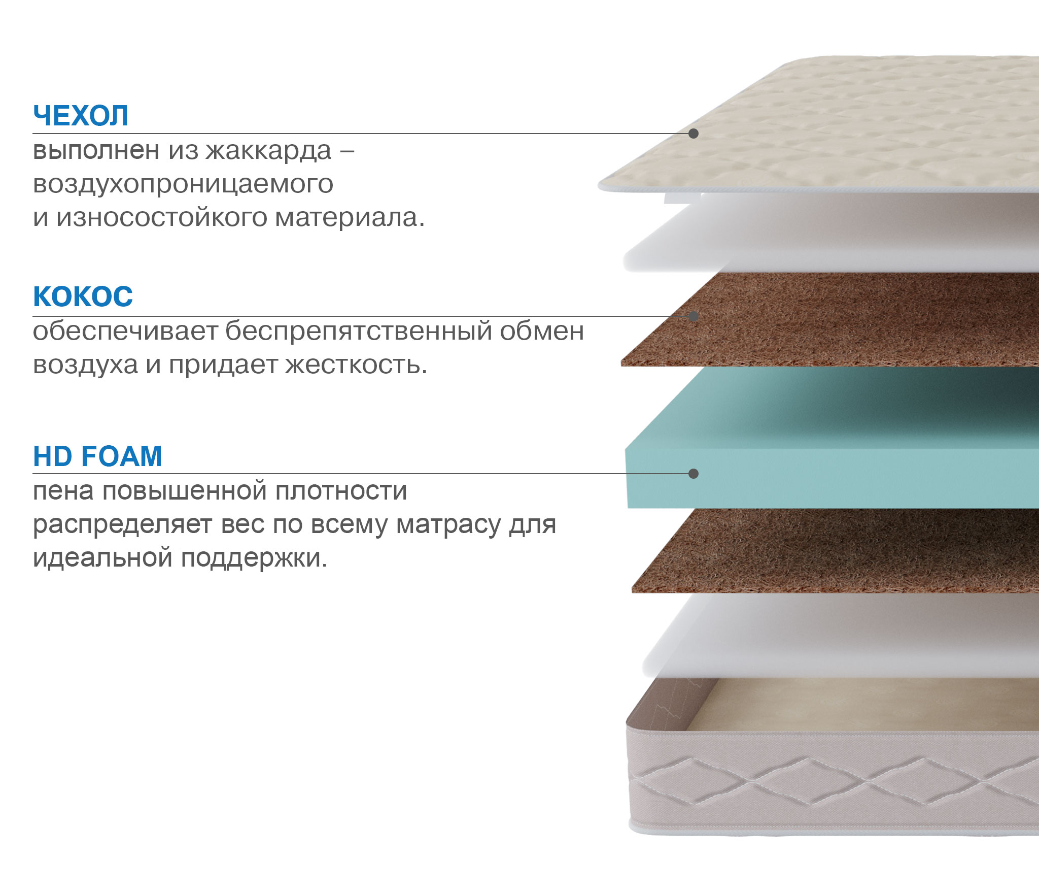 Матрас тоньше, чем предшественник, но обладает схожим показателями жесткости.