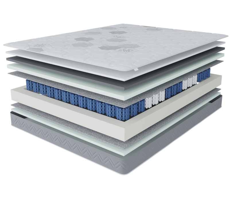 В основе матраса пенные пружины Octaspring высотой 10 см, что позволяет максимально ощутить мягкую динамичность пружины и ее индивидуальную работу. За счет этого увеличивается фаза глубокого сна и значительно снижаются нежелательные пробуждения, влияющие на восстановление организма.