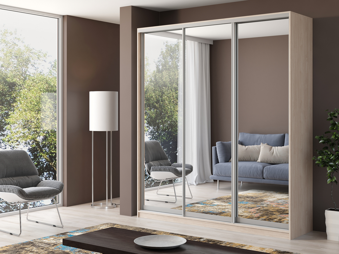 Шкаф купе 3-х дверный Айсберг 210 зеркало (Шамони светлый)