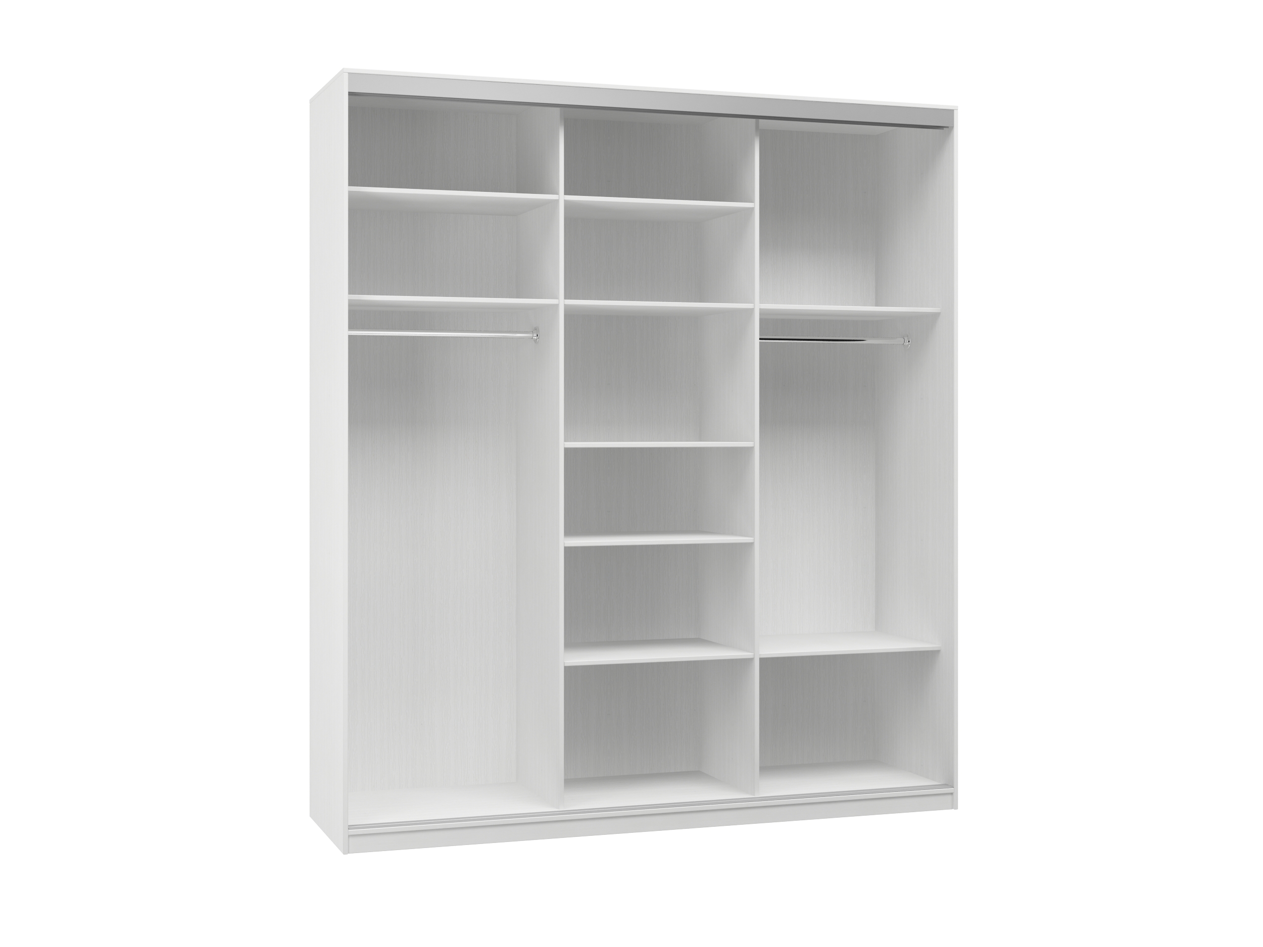 Шкаф купе Айсберг является одной из самых продаваемых моделей. Внутреннее пространство, включает в себя большое количество разных полок и отделение с штангой для вешалок. Модель выполнена из качественного ЛДСП толщиной 16 мм. а современная фурнитура, придает абсолютно тихий ход дверям.