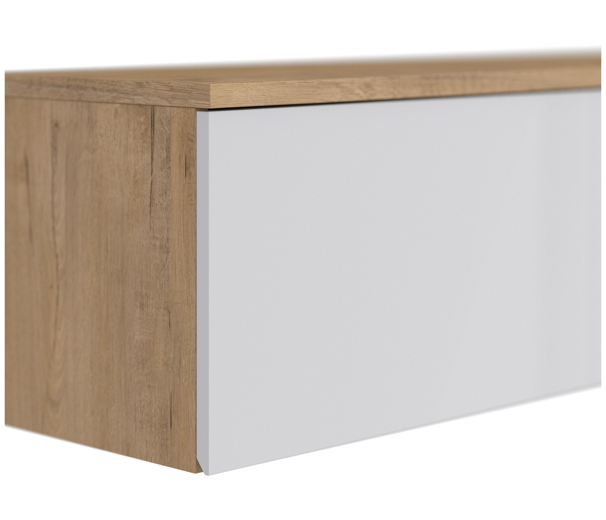 Габаритные размеры – ширина 140 см, высота 35 см и глубина 35 см. Внутри, за открывающейся снизу-вверх дверцей, расположены два вместительных отделения.