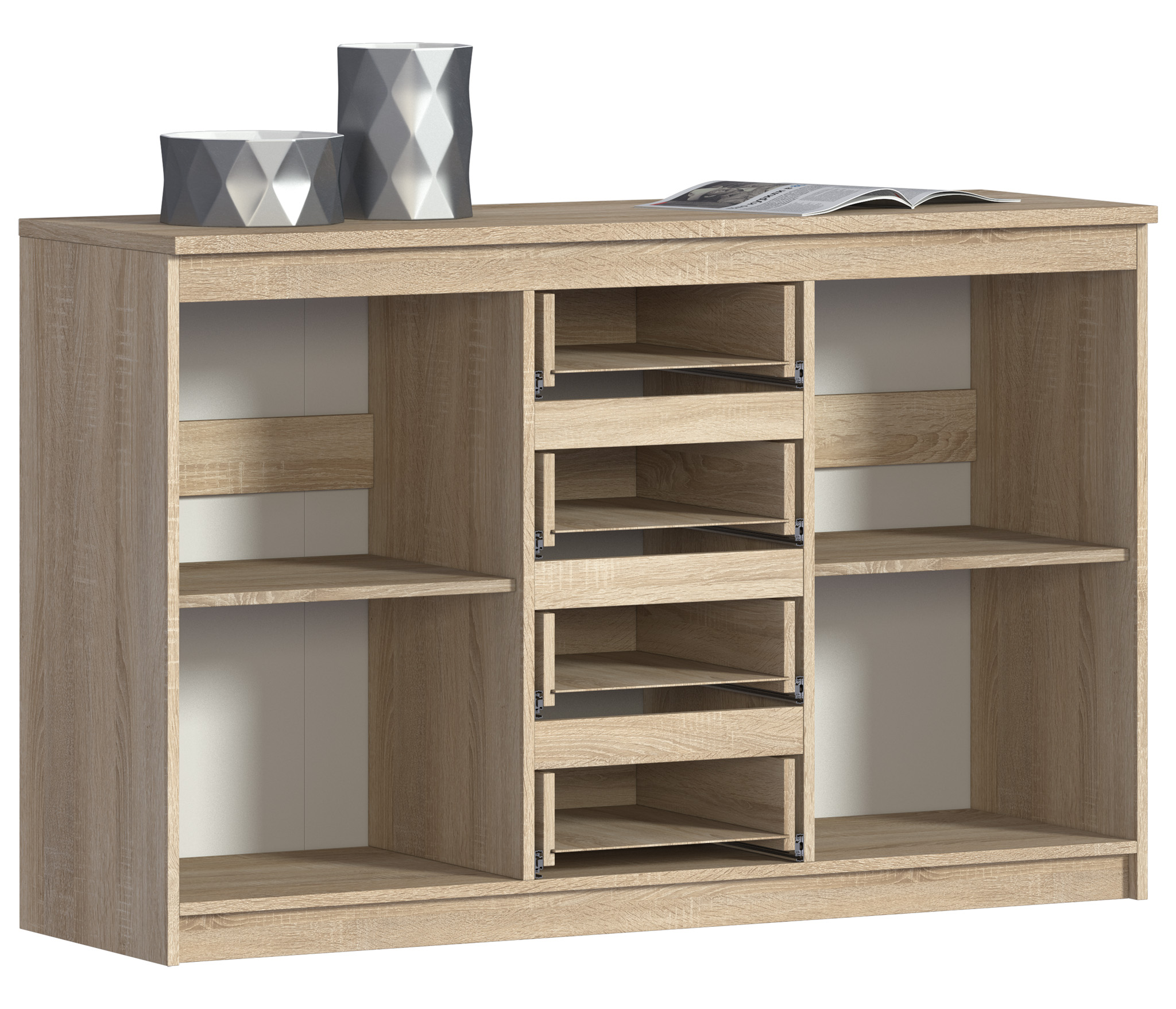 Функциональный и практичный комод Веста СБ-2254 Белый будет оптимальной системой хранения в гостиной, спальне, кабинете или прихожей.¶Габаритные размеры – ширина 140 см, высота 88 см и глубина 44 см говорят о вместительности комода.Под одной столешницей объединены две тумбы по бокам от отделения с четырьмя выдвижными ящиками.Несмотря на внушительные размеры, благодаря белому цвету и минималистичному дизайну, комод Веста СБ-2254 смотрится стильно и не громоздко.