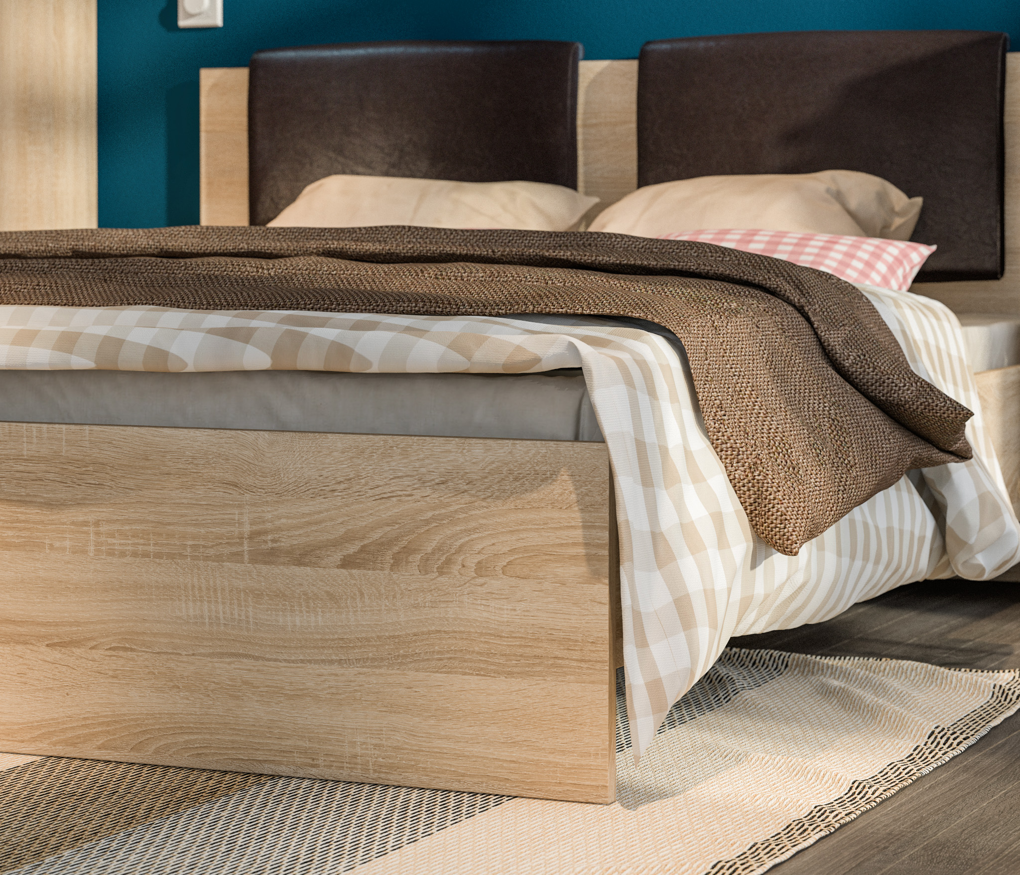 Кровать из модульной серии «Веста» на 1600 – природные оттенки материла придают теплоту и уют в спальной комнате. Вы можете дополнить кровать тумбой. Комодом и шкафом из серии «Веста».