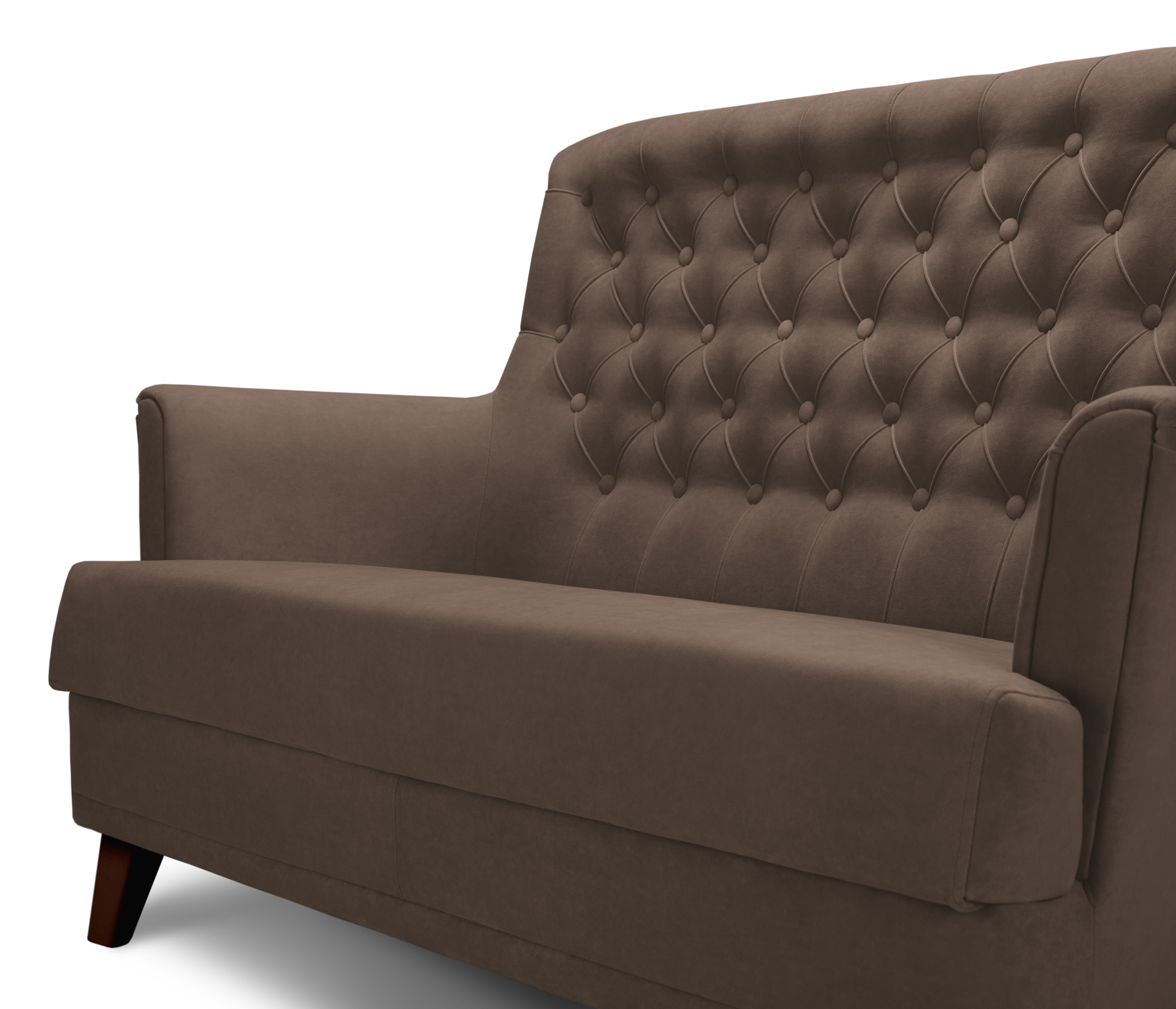 Отделка спинки выполнена с декоративной прострочкой и украшена пуговицами.Ножки дивана выполнены из массива березы для наибольшей устойчивости.