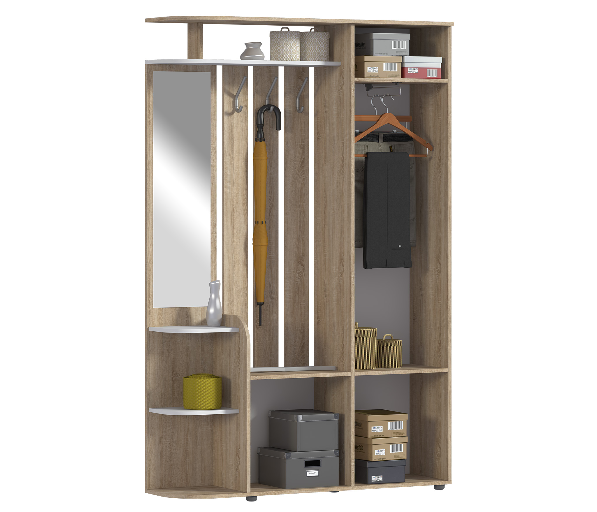 Прихожая Наоми в новом цвете Белый. Стильное решение для вашей квартиры или дома, которое создаст уют в любом помещении. В комплекте отделение с тремя вешалками вместит верхнюю одежду всей вашей семьи. Прихожая Столплит дополнена зеркалом, в котором можно полностью увидеть свое отражение. Маленькие шкафы рассчитаны на хранение обуви. Сумочки и другие аксессуары можно ставить на полочки.