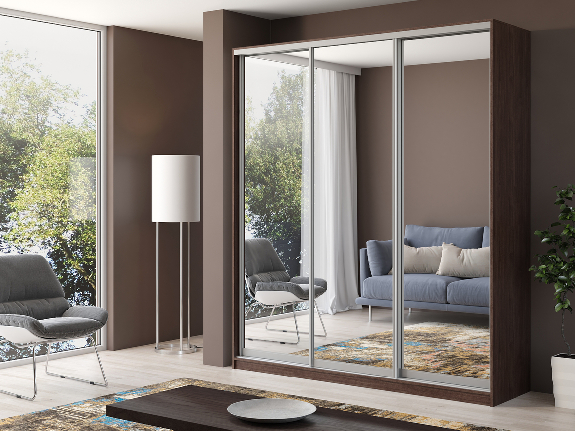 Шкаф купе 3-х дверный Айсберг 200 зеркало (Шамони темный)