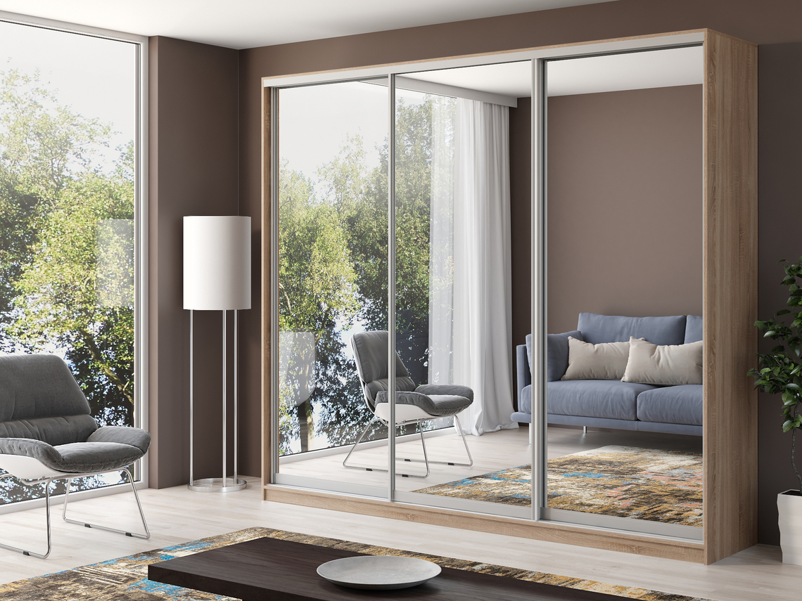 Шкаф купе 3-х дверный Айсберг 250 зеркало (Дуб Сонома)