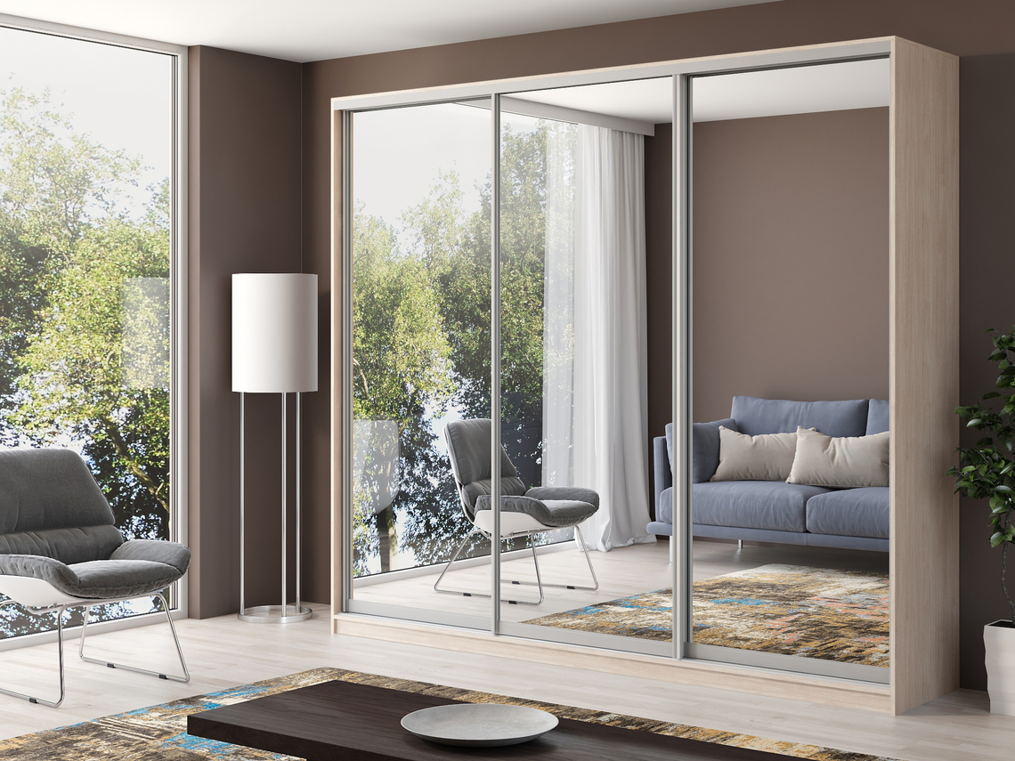 Шкаф купе 3-х дверный Айсберг 250 зеркало (Шамони светлый)