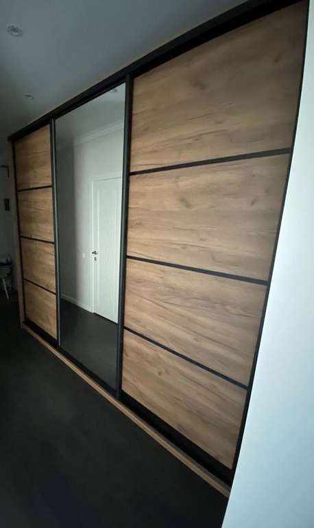 Приобрела шкаф купе цвета дуб. По размерам точно вписался в проем. Хочу сказать, что очень добротный шкаф и вместительные полки. С доставкой не возникло никаких сложностей.