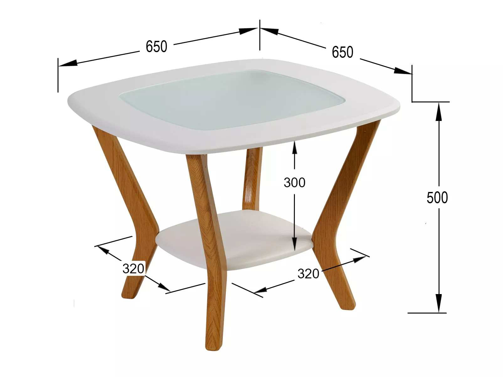 Столик имеет компактные размеры: длина 650 мм, ширина 650 мм, высота 500 мм.