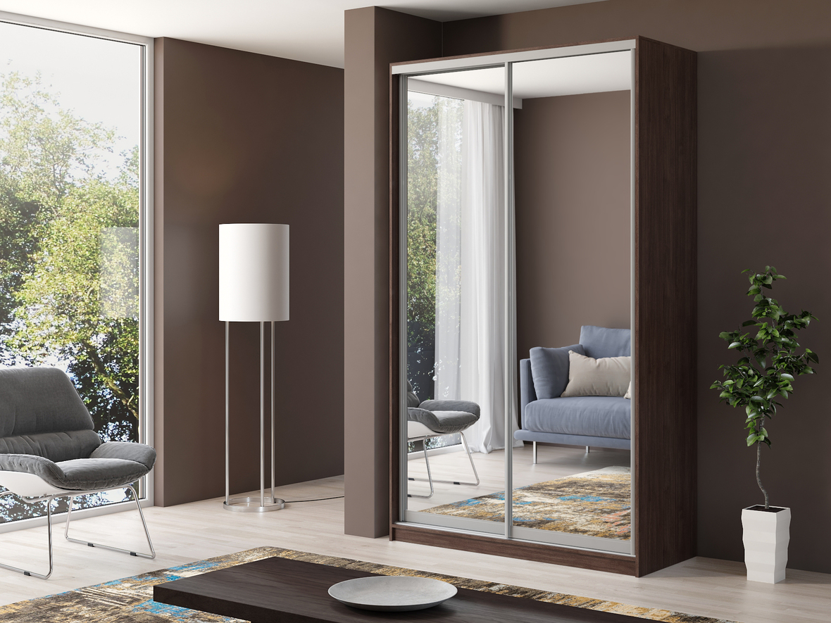Шкаф купе 2-х дверный Айсберг 130 /зеркало (Шамони темный)