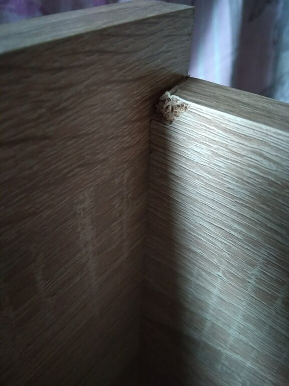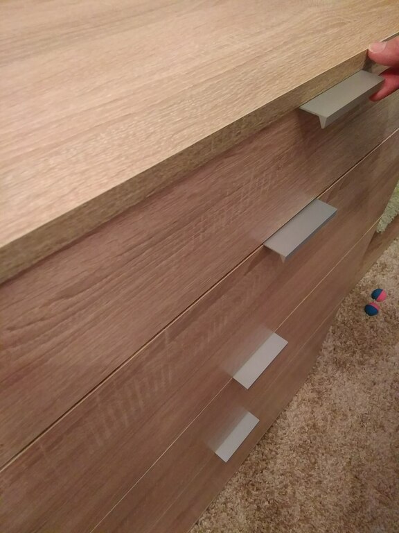 Ручки неудобные, острые, если мимо проходишь - цепляешь. На самом нижнем ящике нужно боковины делать повыше, иначе кладешь, например, белье, оно вываливается по бокам.
