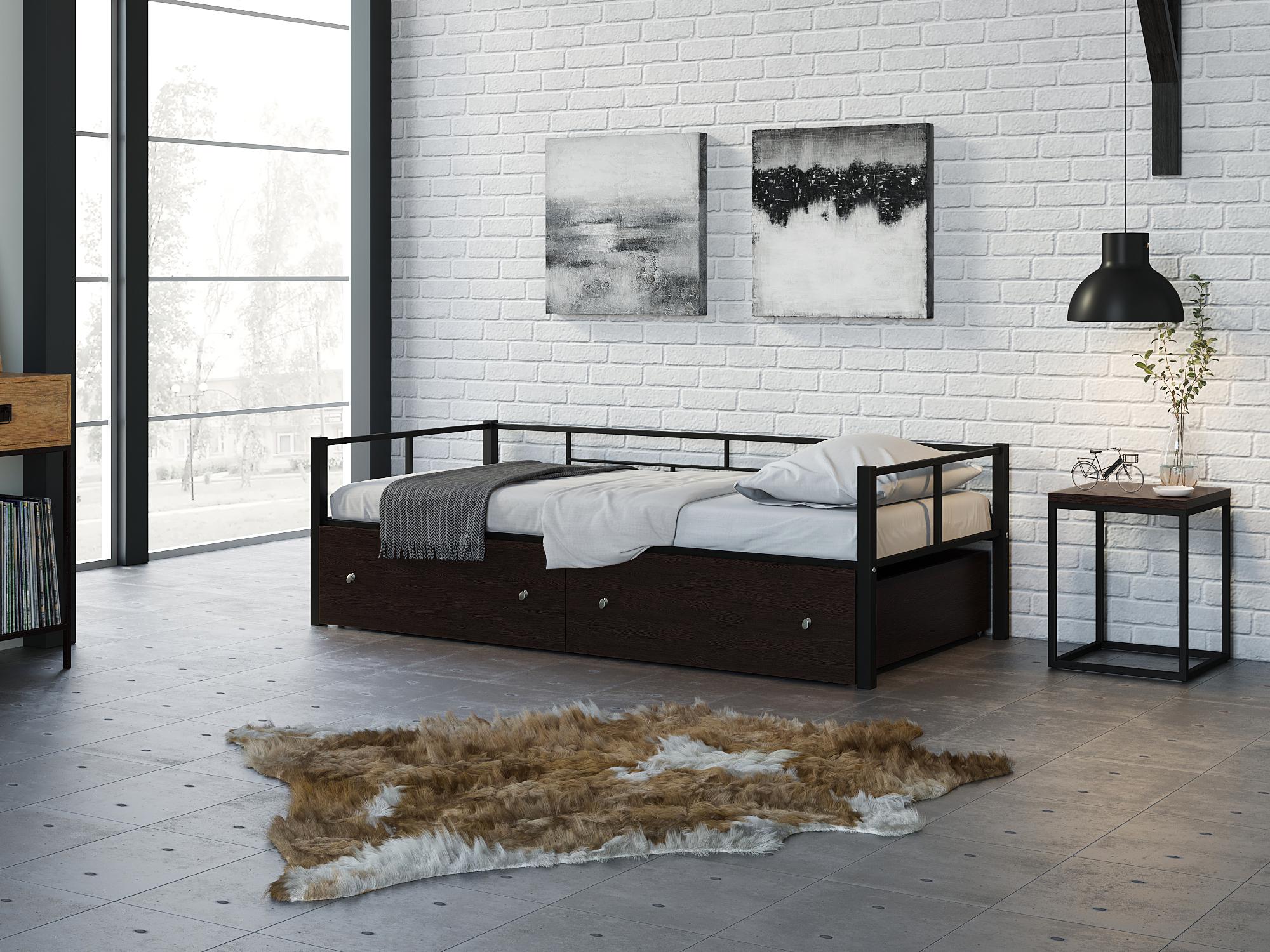 Односпальная кровать Арга ящики венге от Фабрики мебели 4 Сезона. Каркас выполнен из прочного металла, покрытого порошковой краской. Основание под матрас сварное, ламели металлические профиль 30х15 мм. Выдерживает нагрузку до 150 кг. Ножки кровати имеют пластиковые заглушки. В комплект входят два выкатных ящика из ЛДСП 16 мм, без направляющих, на пластиковых колесах. Данные для отправки через транспортные компании: 2 упаковки: 1. 191*95*9 см 2. 94*94,5*8,5 см Вес 45 кг/Объём 0,3 м3.