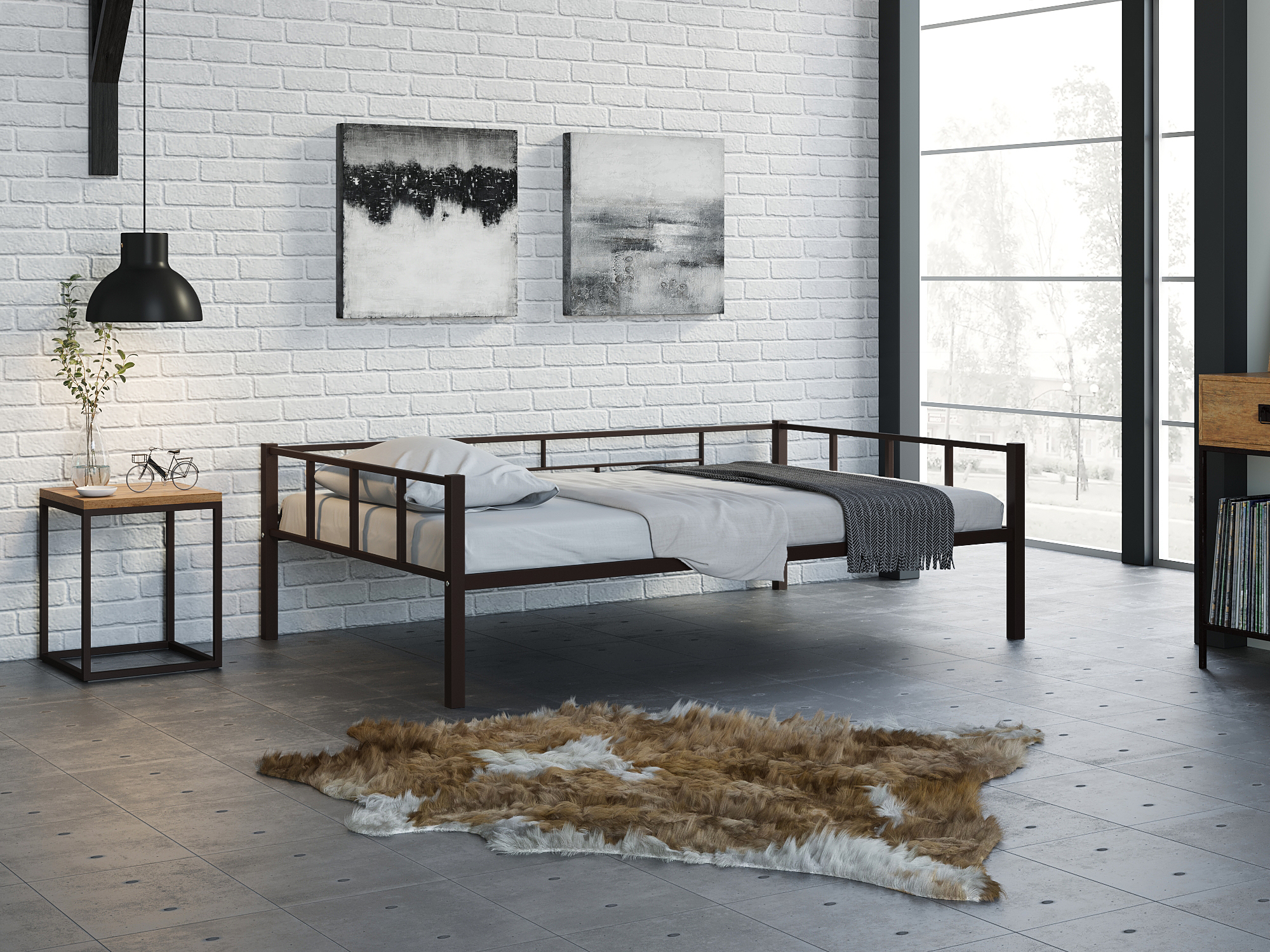 Оригинальная односпальная кровать. Жесткий и прочный каркас. Купил еще ортопедический матрас в этом магазине. Как раз по размерам.