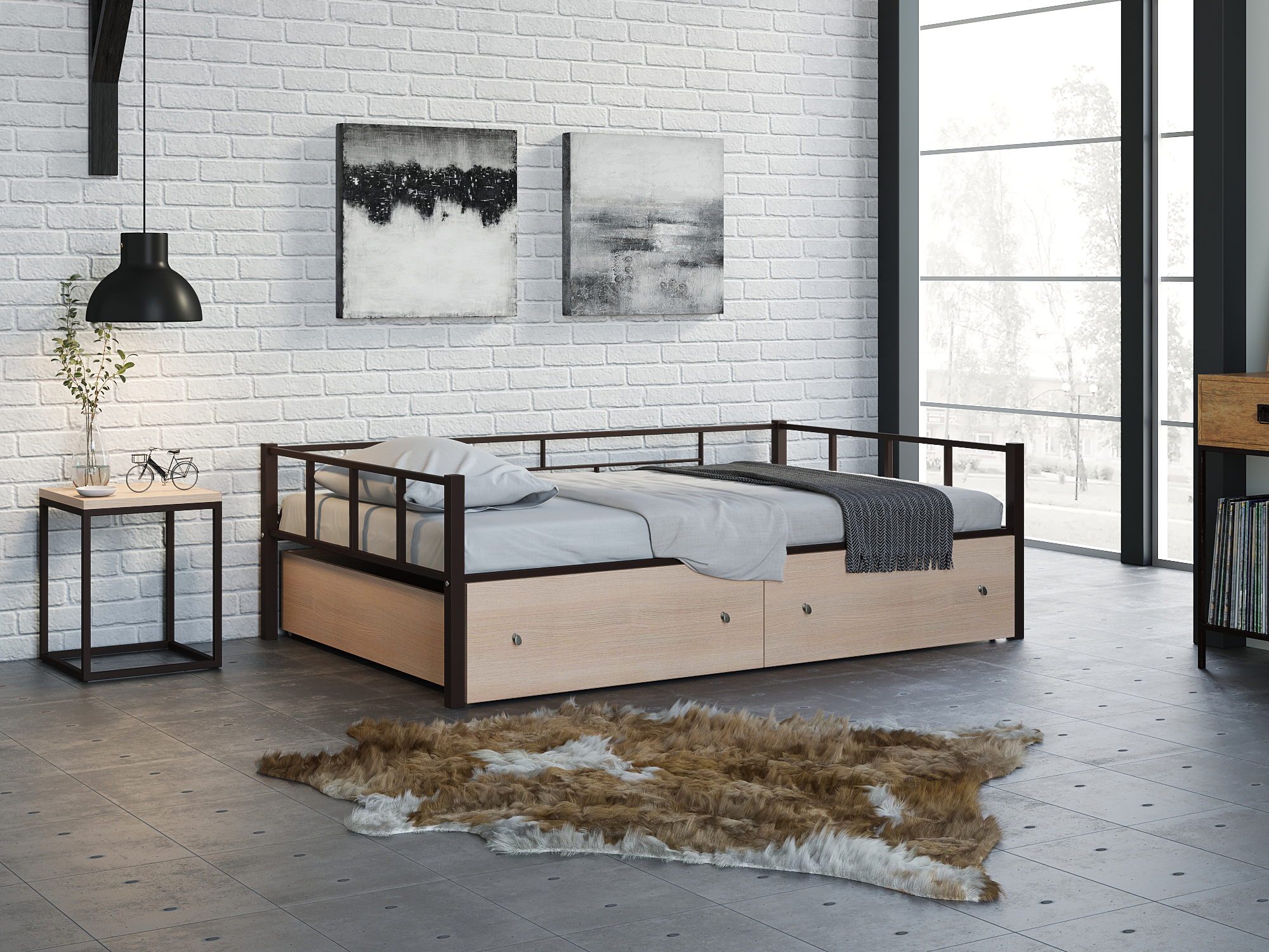 Односпальная кровать Арга 120 ящики дуб молочный (Коричневый)