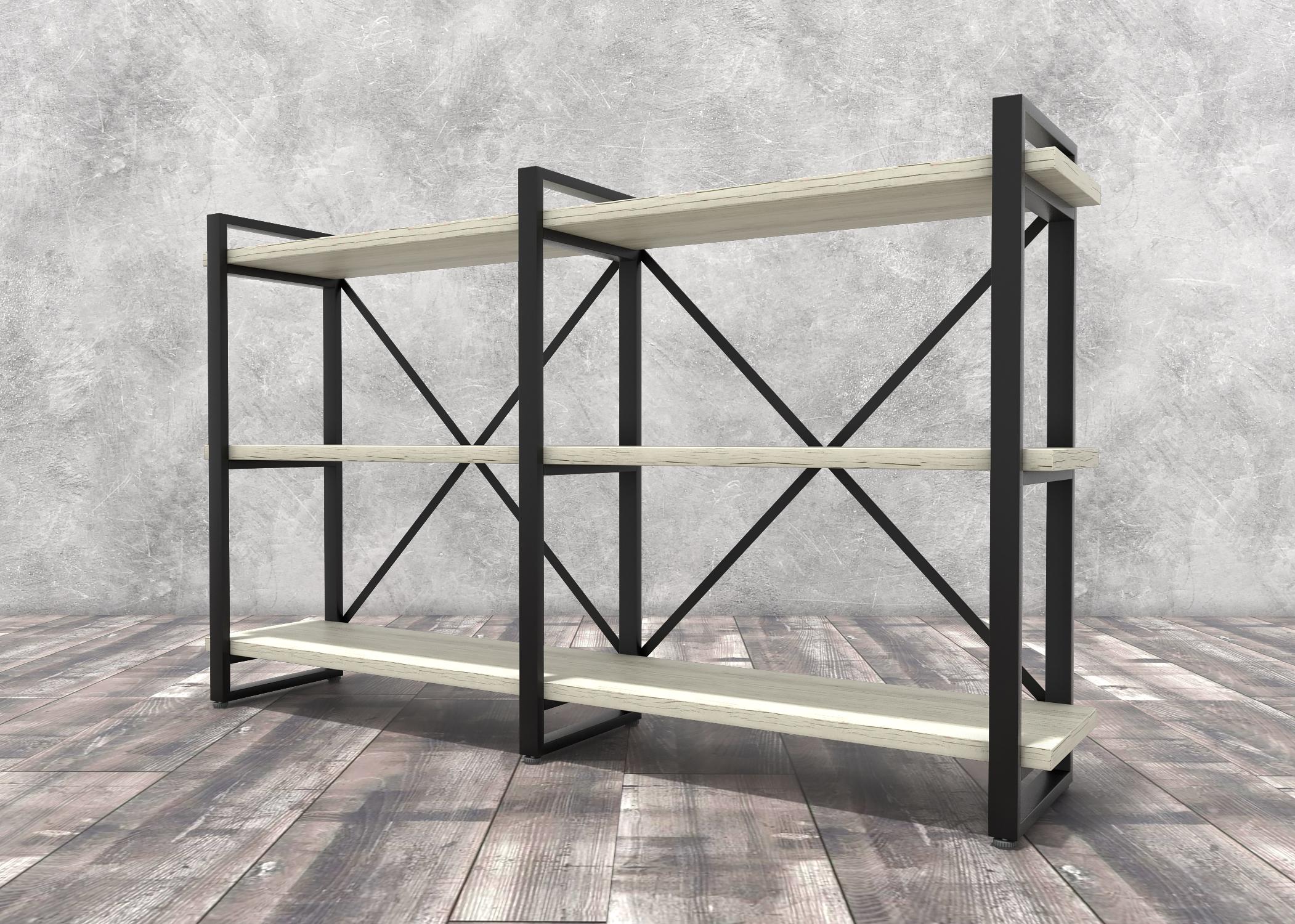 Стеллаж Айсберг Лофт 160х120-3 черный (Дуб крафт белый)