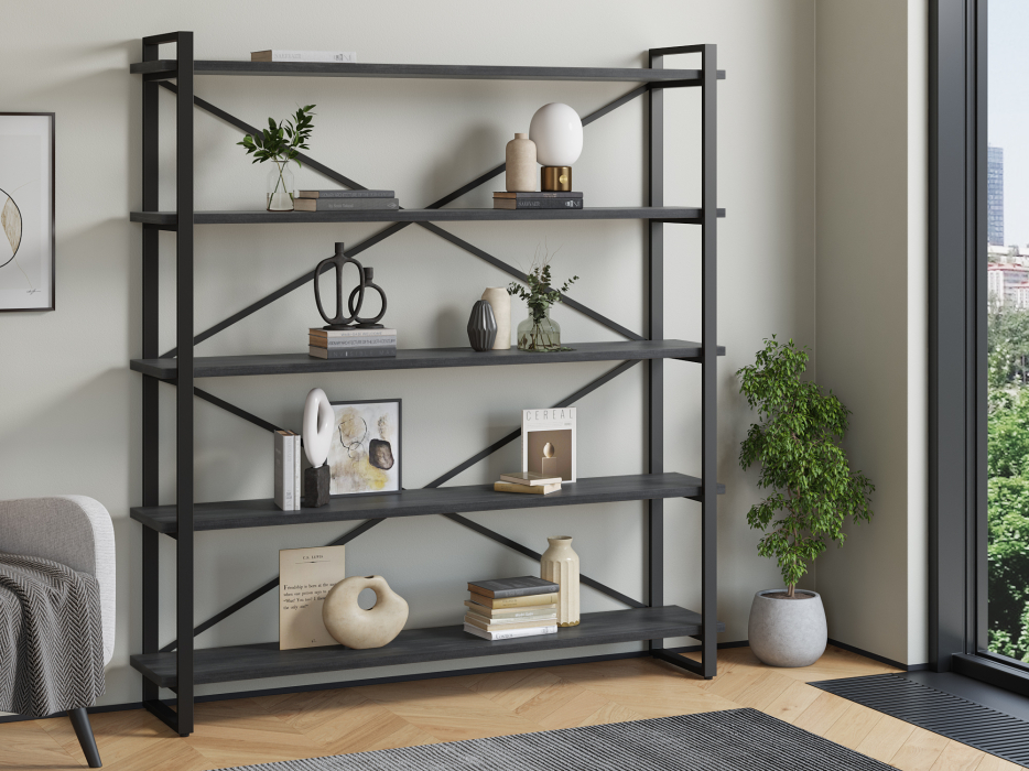 Стеллаж Айсберг Лофт 160х182-2 черный (Cеверное дерево темное)