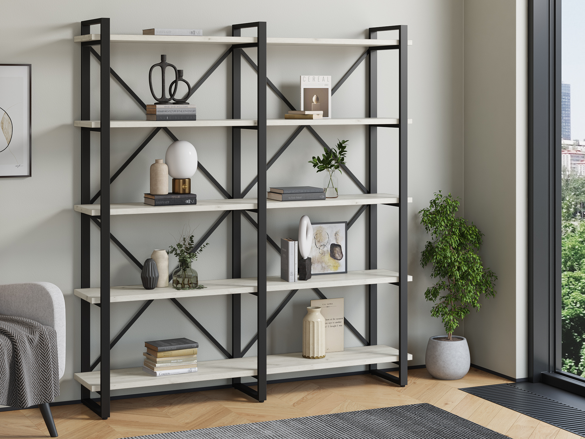 Стеллаж Айсберг Лофт 160х182-3 черный (Дуб крафт белый)