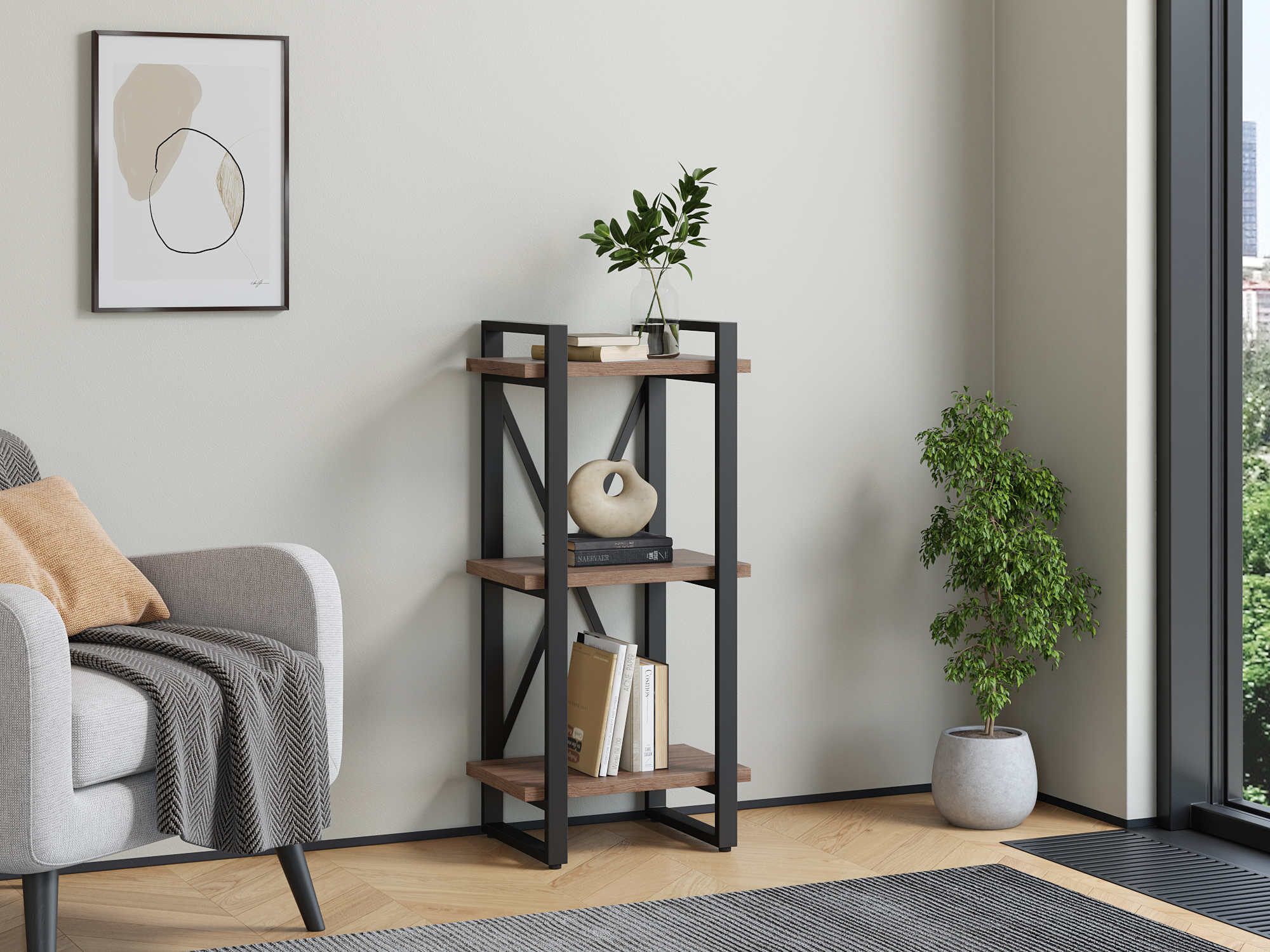 Отзывы о Столплит Стеллаж Айсберг Лофт 40х102-2 черный Дуб/крафт/табак