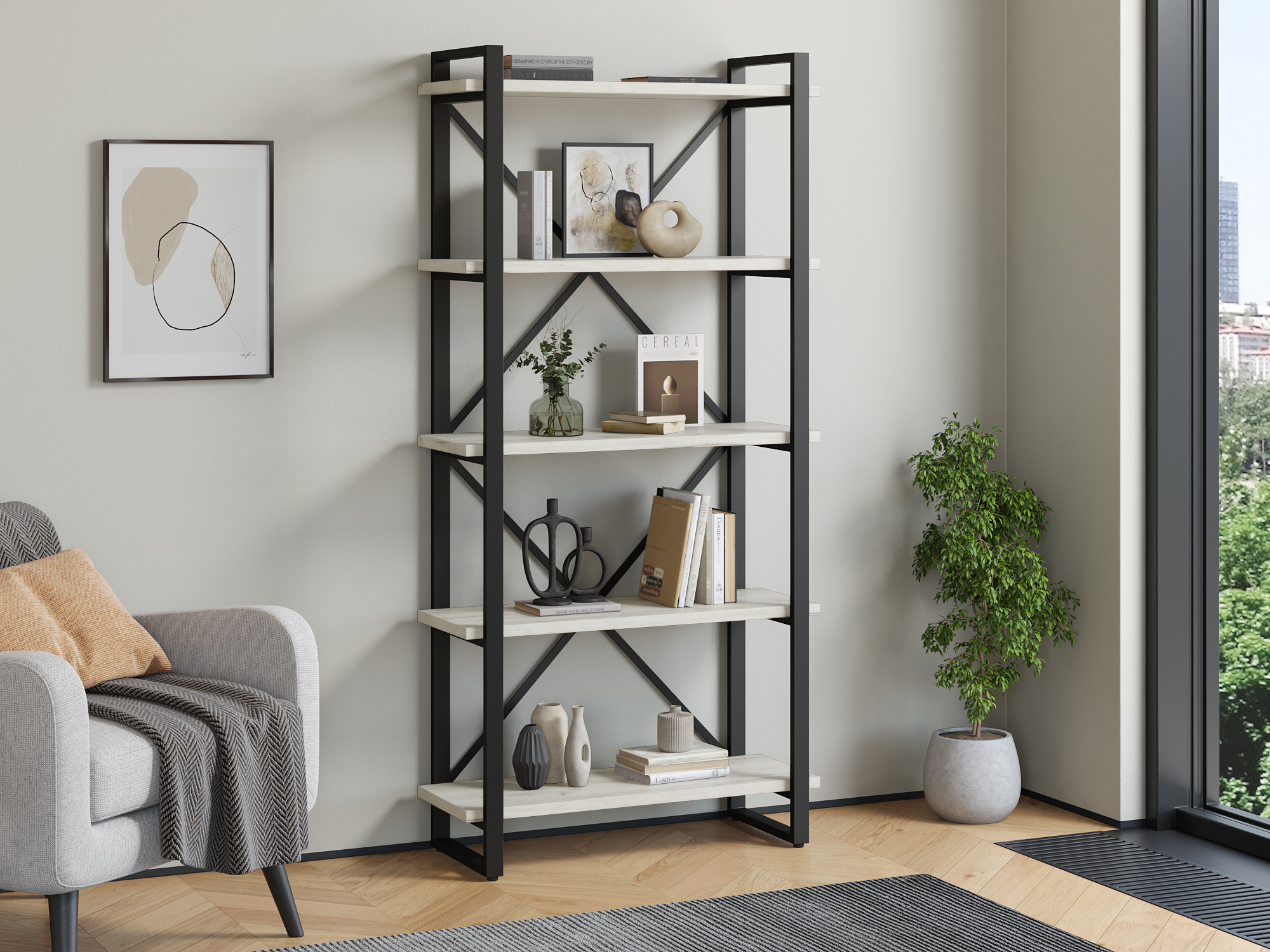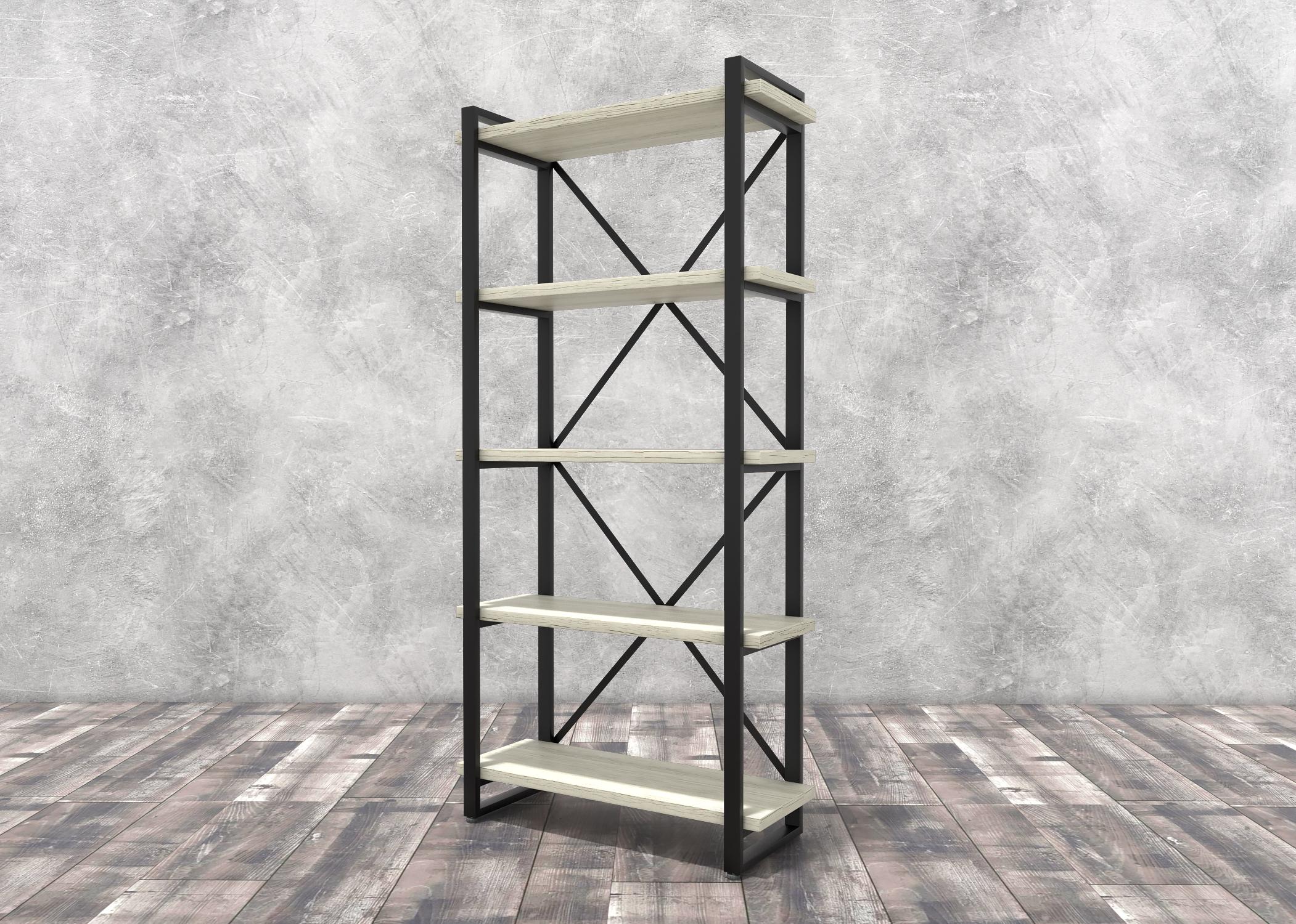 Стеллаж Айсберг Лофт 80х182-2 черный (Дуб крафт белый)