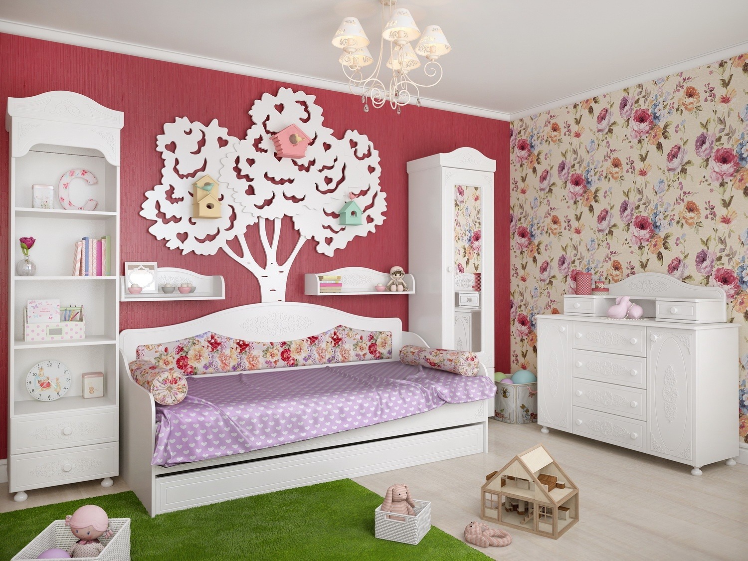 Кровать с мягкой спинкой, выдвижной ящик для белья. Основание кровати выполнено из ДСП. Мебель изготовлена из качественной ламинированной ДСП 16 мм. В оформлении фасадов МДФ применяется уникальная технология нанесения объемного узора (3-D). В цоколи встроены подпятники, предотвращающие повреждение пола.