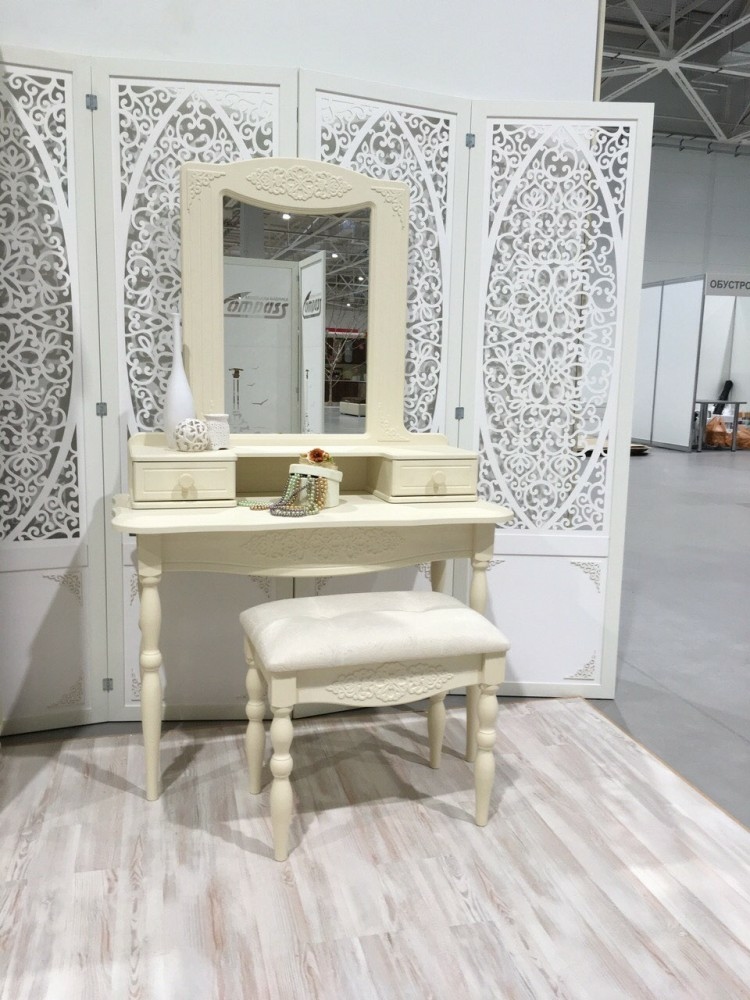 На столик могут быть поставлены (прикручены) полка АС-37 или полка с зеркалом АС-38. Такие комплекты отлично подходят как для прихожей, так и для спальни.