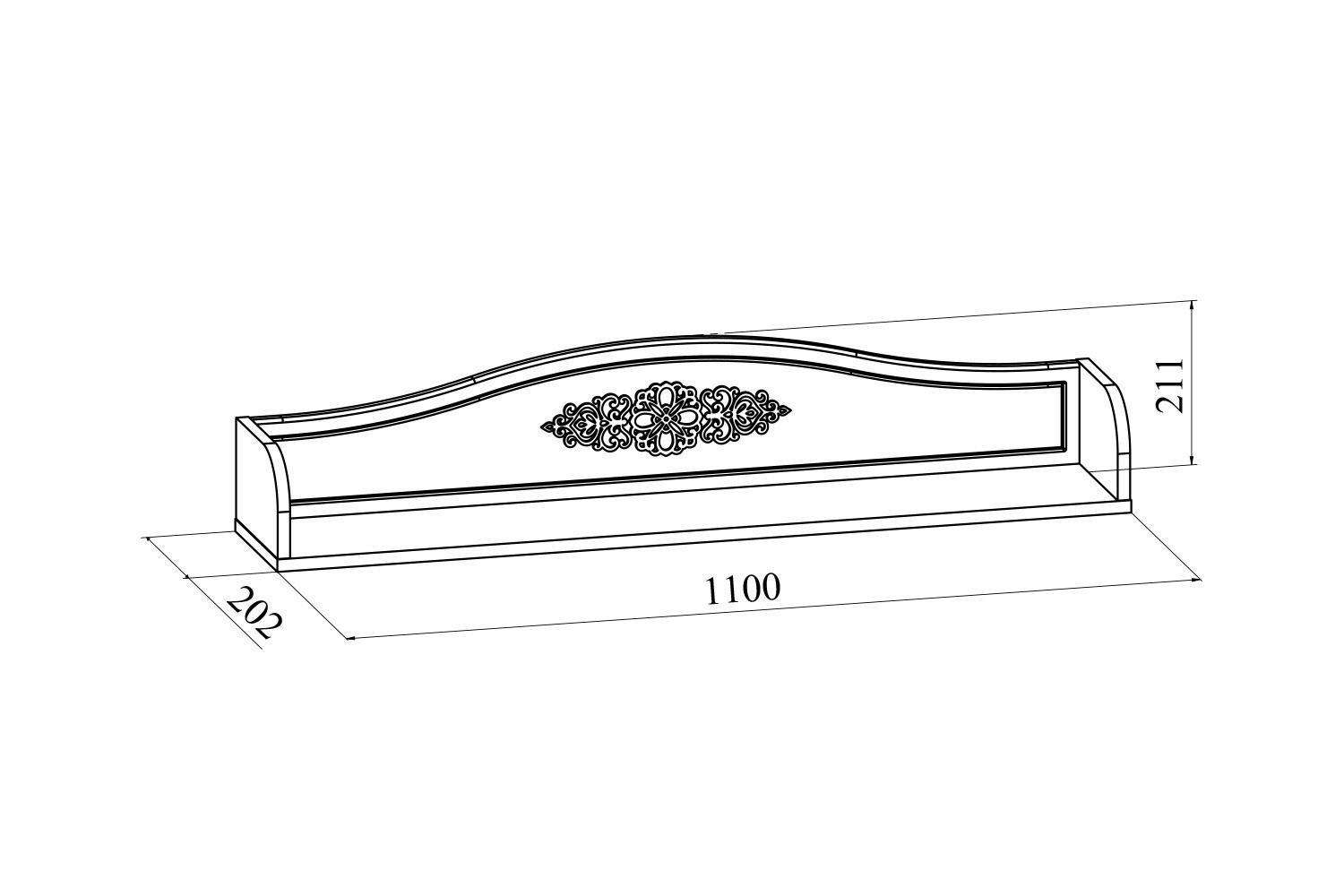 «Ассоль» - мягкий мерцающий глянец и эксклюзивный узор, повторяющийся на фасадах всех модулей идеален для создания нежного уютного интерьера спальни, гостиной, детской, прихожей.Полка идеально вписывающаяся в нежный стиль всей линейки.