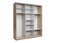 Шкаф купе Айсберг является одной из самых продаваемых моделей. Внутреннее пространство, включает в себя большое количество разных полок и отделение с штангой для вешалок. Модель выполнена из качественного ЛДСП толщиной 16 мм. а современная фурнитура, придает абсолютно тихий ход дверям.