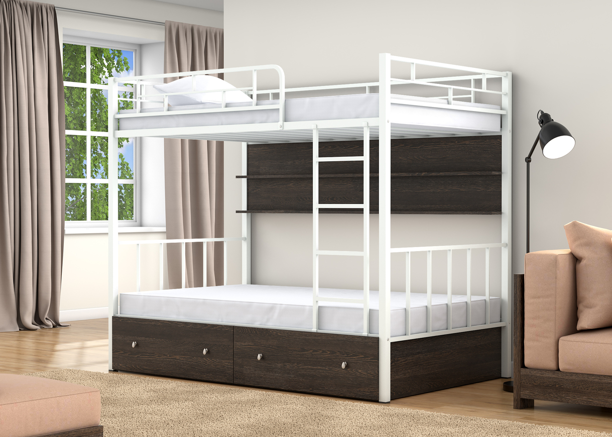 Двухъярусная кровать Валенсия 120 ящики полка венге (Белый)