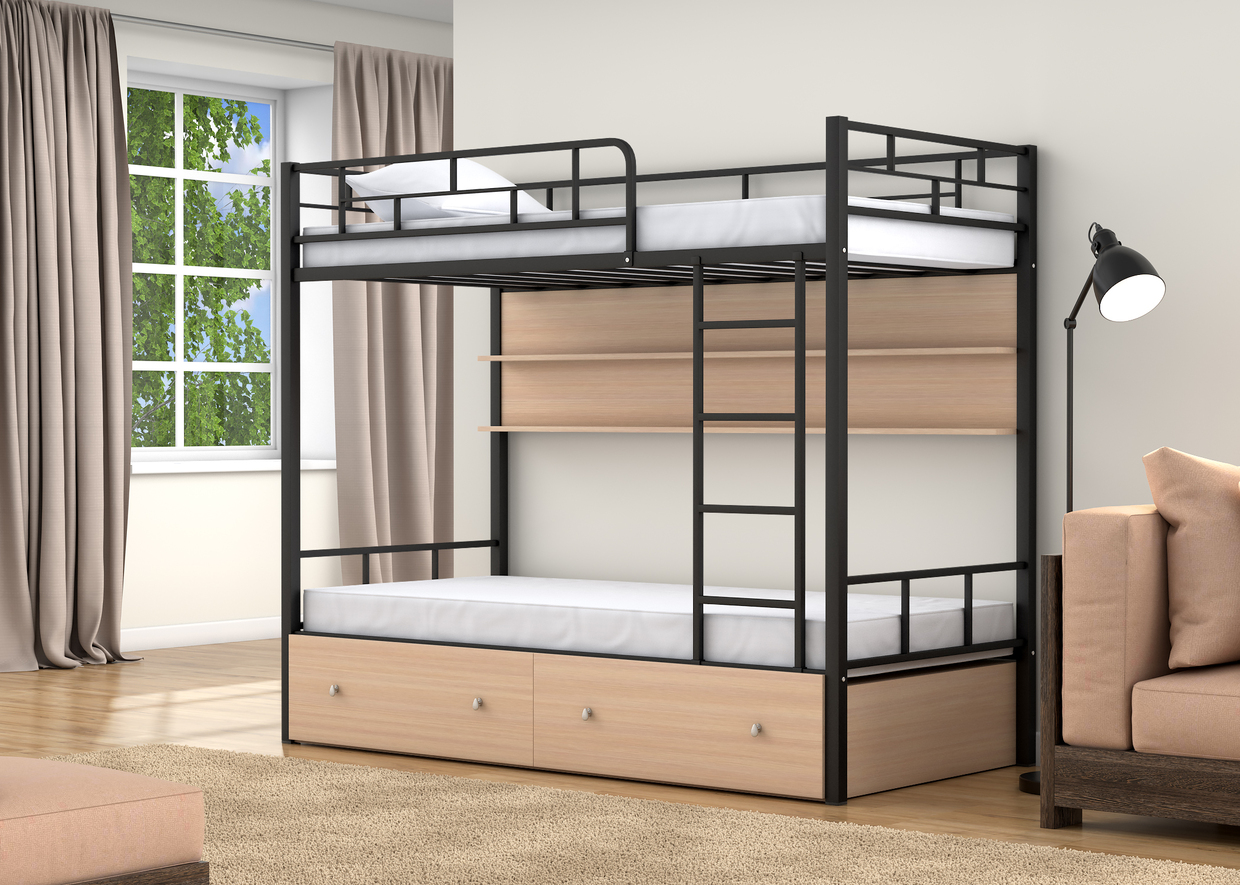 Выросли наши мальчишки из детских кроваток и захотели металлическую двухярусную. Увидели у кого то из друзей и долго нас уговаривали. Мне казалось, что металл для детей - это жуткая жуть, но когда приехали и посмотрели сами, то поняли, что это наш вариант! В детской только на люстре не качаются наши детки! Взяли модель с ящиками, в одном ящике постельное белье у одного, в другом ящике- у другого.Никакой дискриминации, все довольны, а родители больше всех.Если говорить о каркасе, то он очень устойчивый,тяжелый.Стоит хорошо, ничего не скрипит и не расшатывается. Матрасы покупали средние по цене,но они хорошие. Говорят нам, что спать удобно, и самое главное! Мы освободили детям практически полкомнаты, потому что места она занимает немного. Рекомендую.