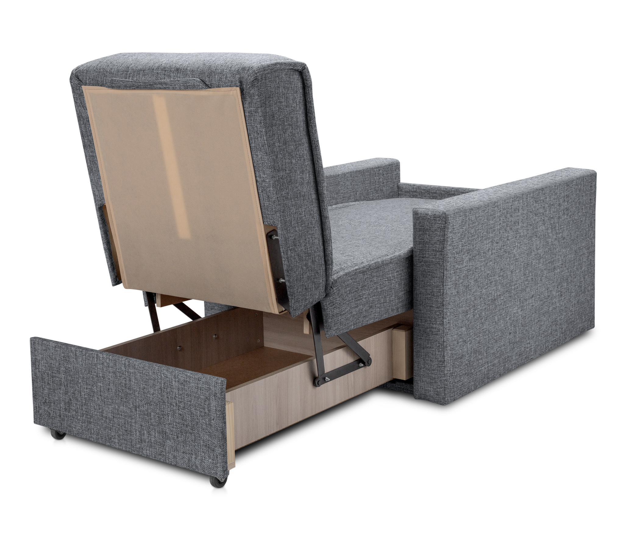 Кресло-кровать имеет ящик для хранения постельных принадлежностей.