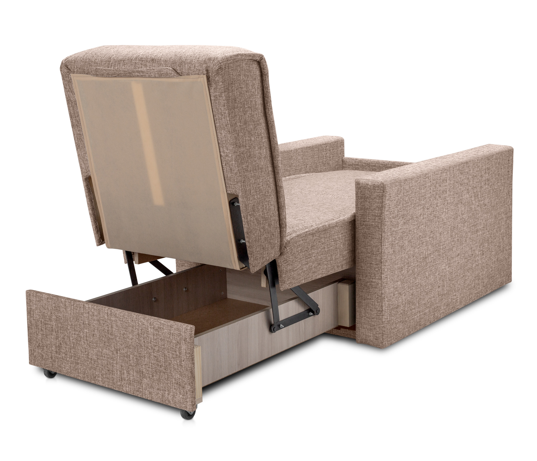 Кресло-кровать имеет ящик для хранения постельных принадлежностей.