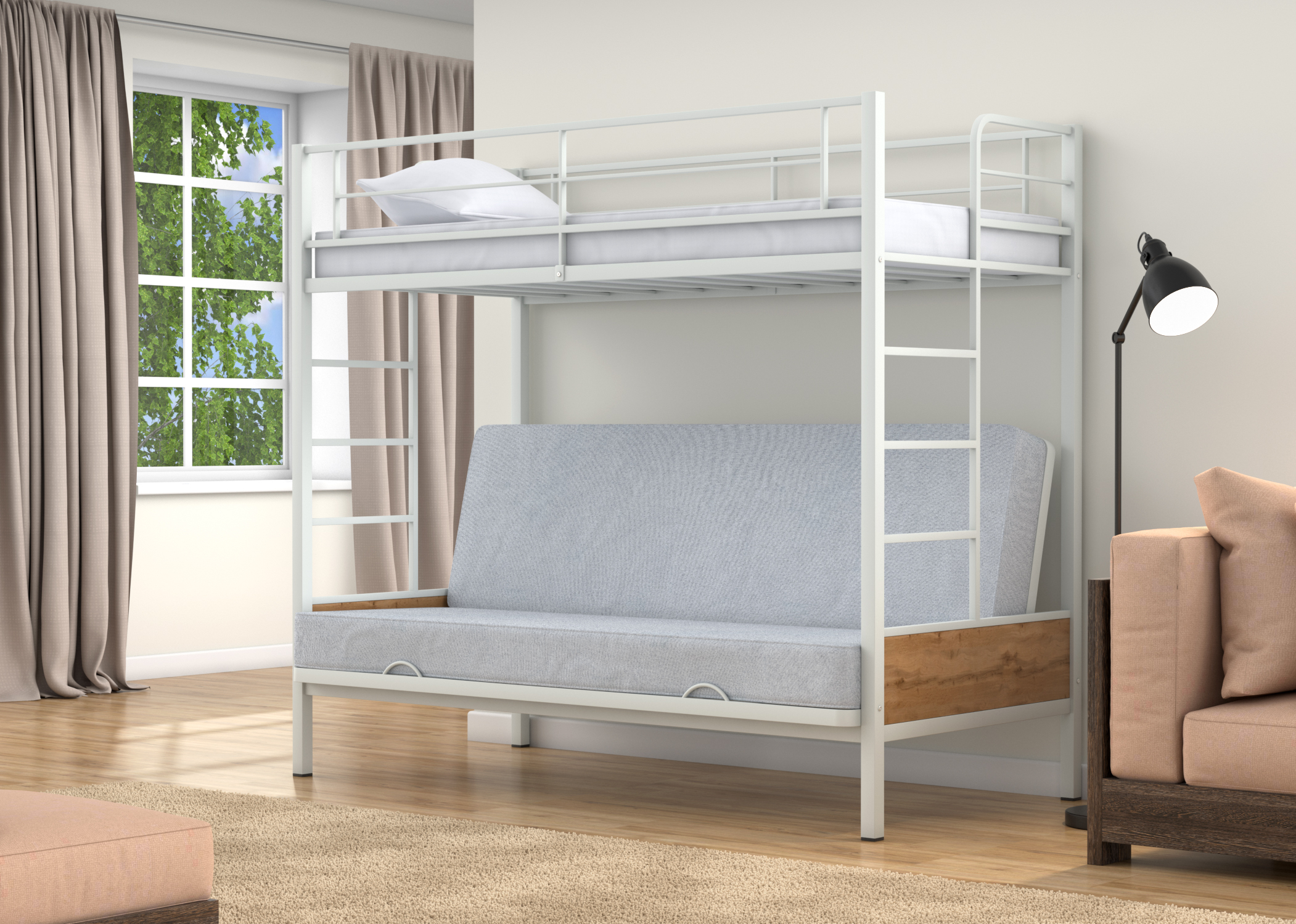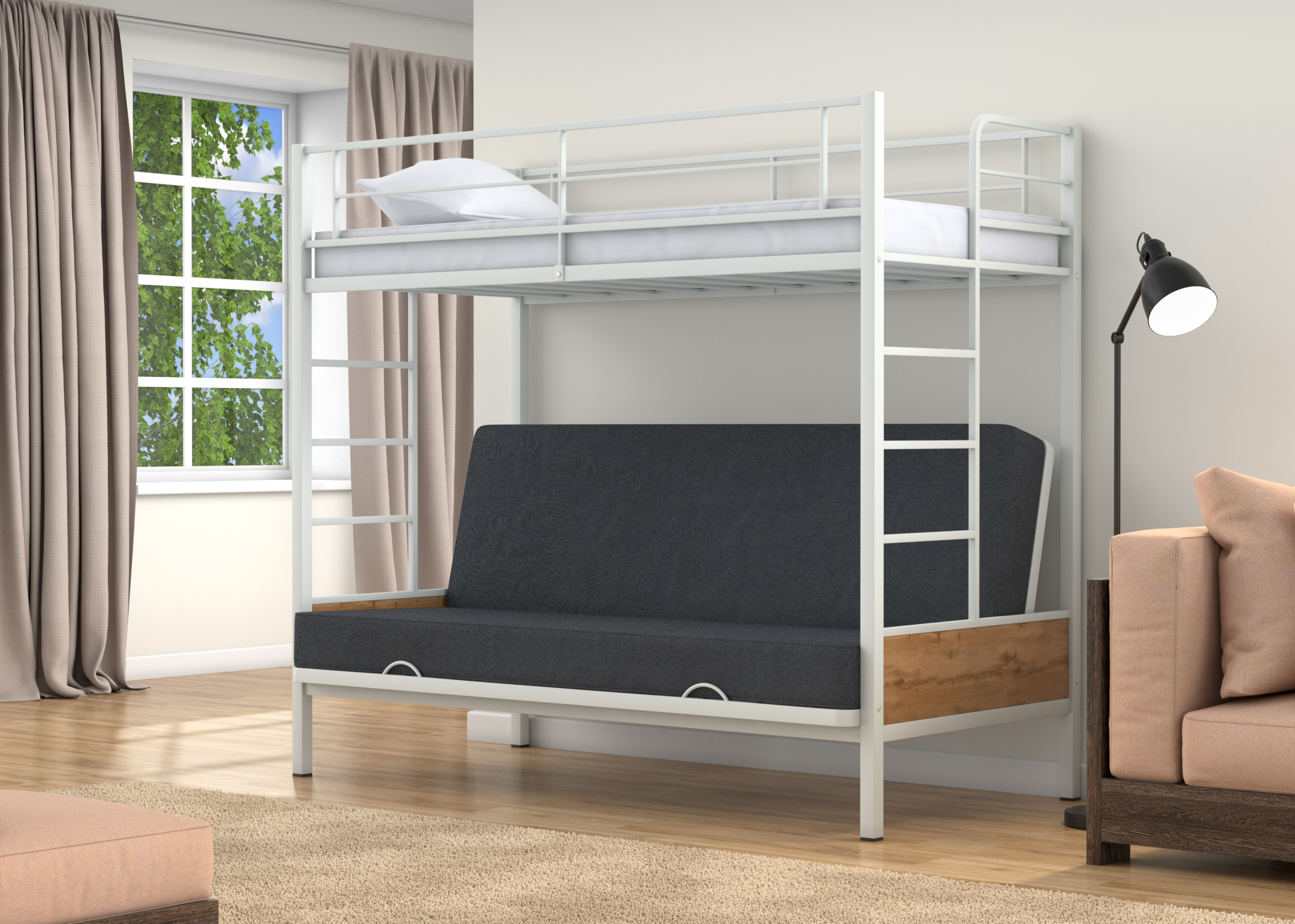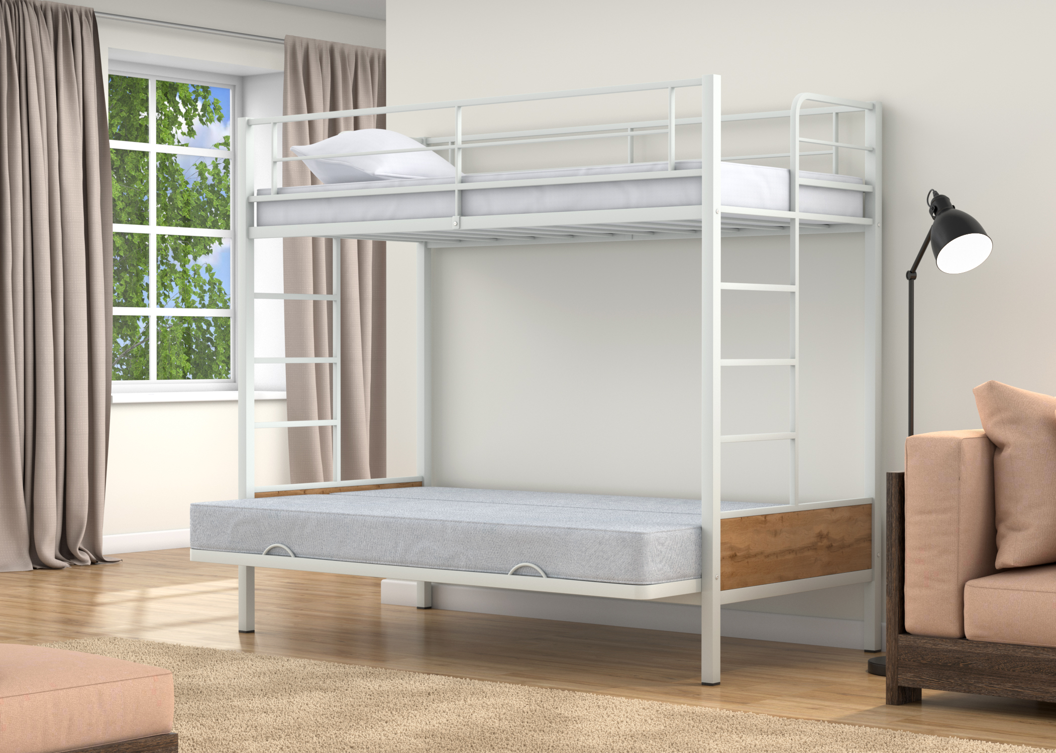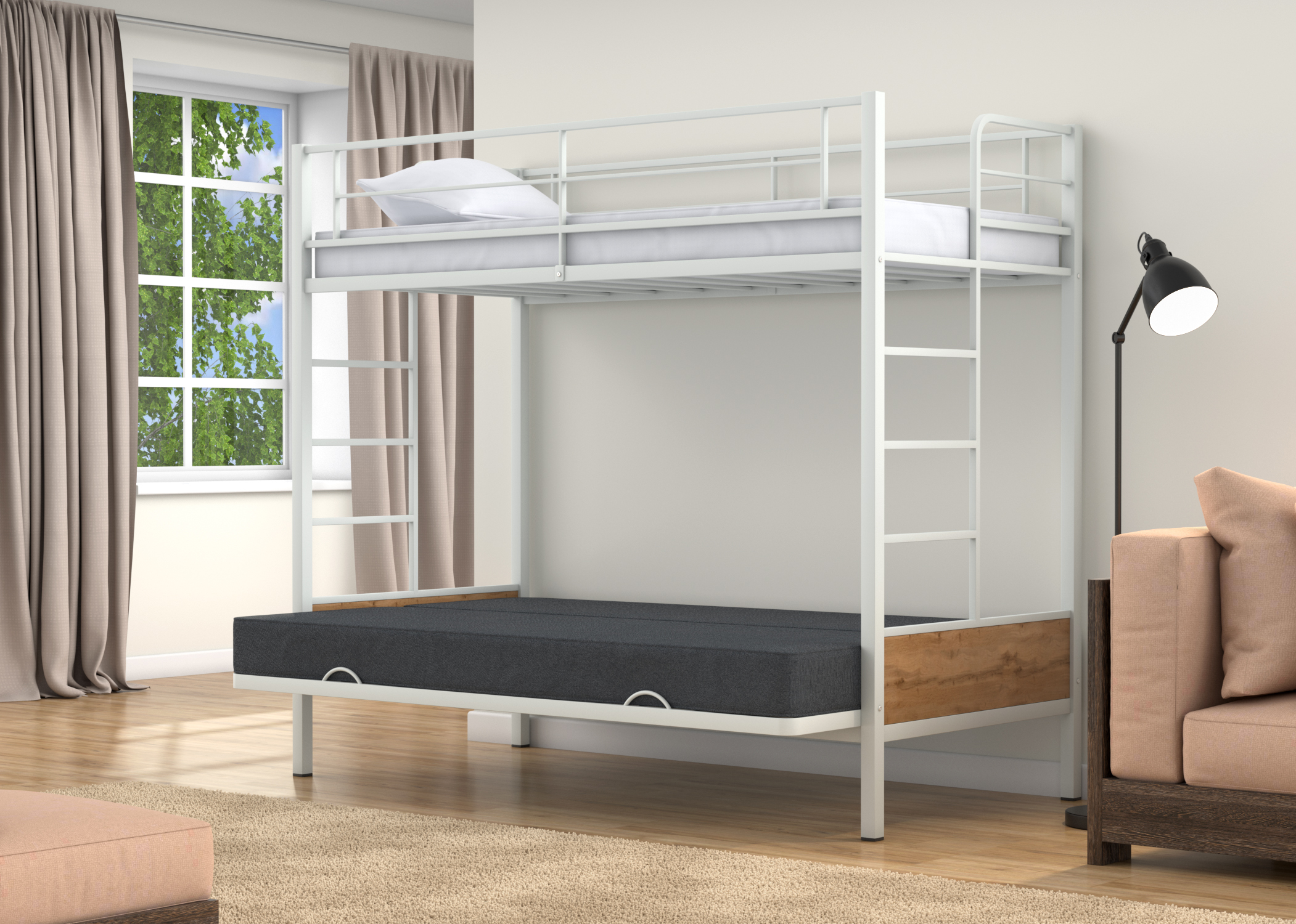 Наконец-то нашёлся тот самый нужный вариант на дачу. Диван-кровать внизу, плюс дополнительное место сверху. Это идеально! Так ещё и удобно, надежная и прочная конструкция внушает доверие. Доставка быстрая, без всяких повреждений. Сборщику спасибо за качественную работу.