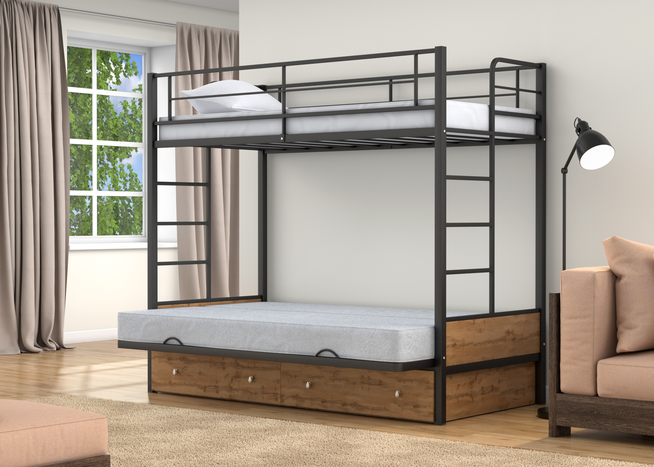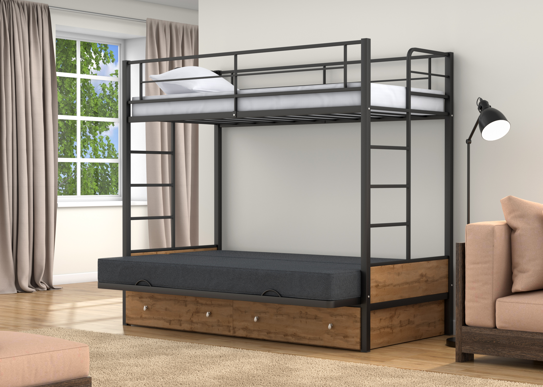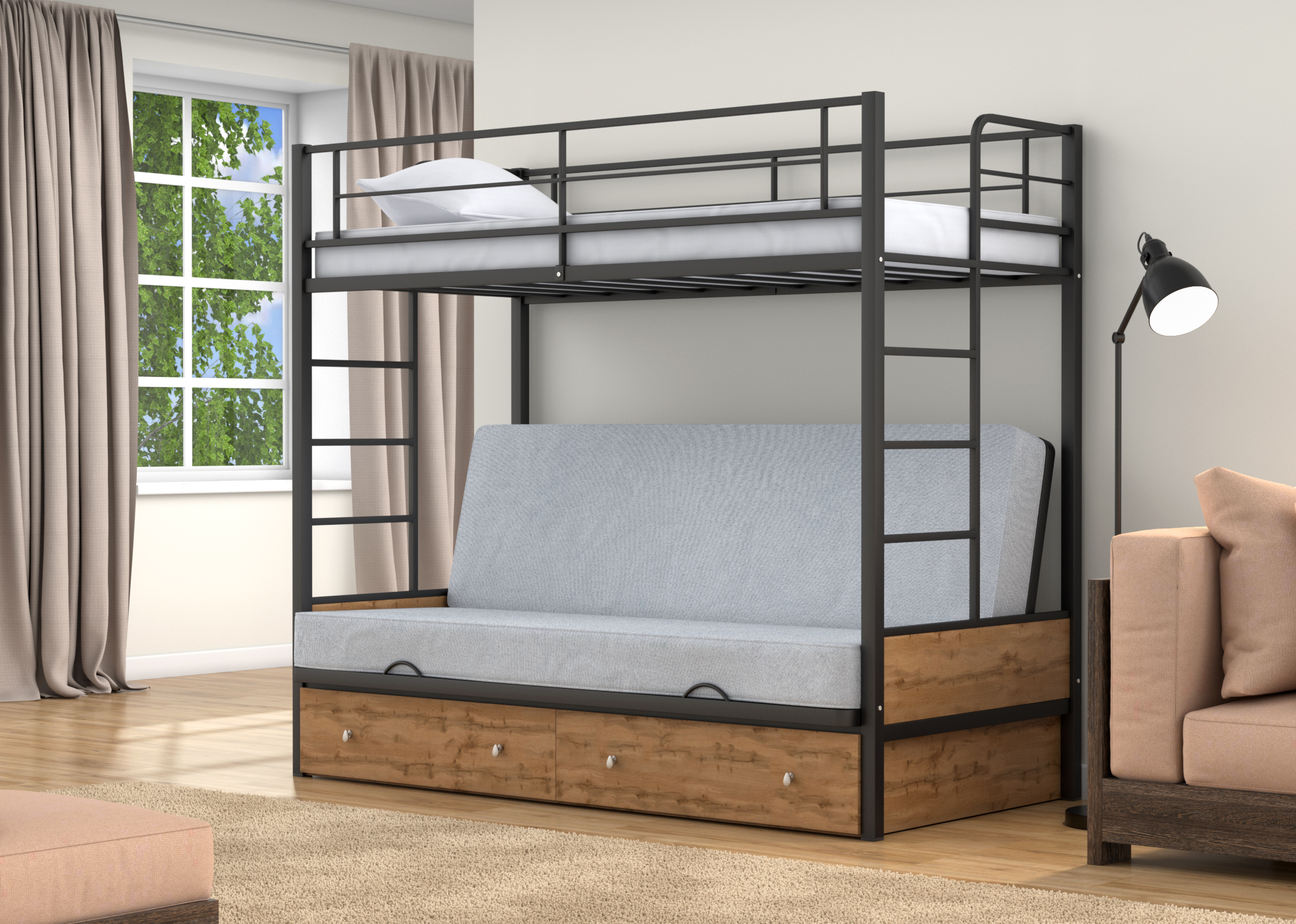 Отзывы о Столплит Двухъярусная кровать-диван Дакар 1 ящики Дуб ватан Черный