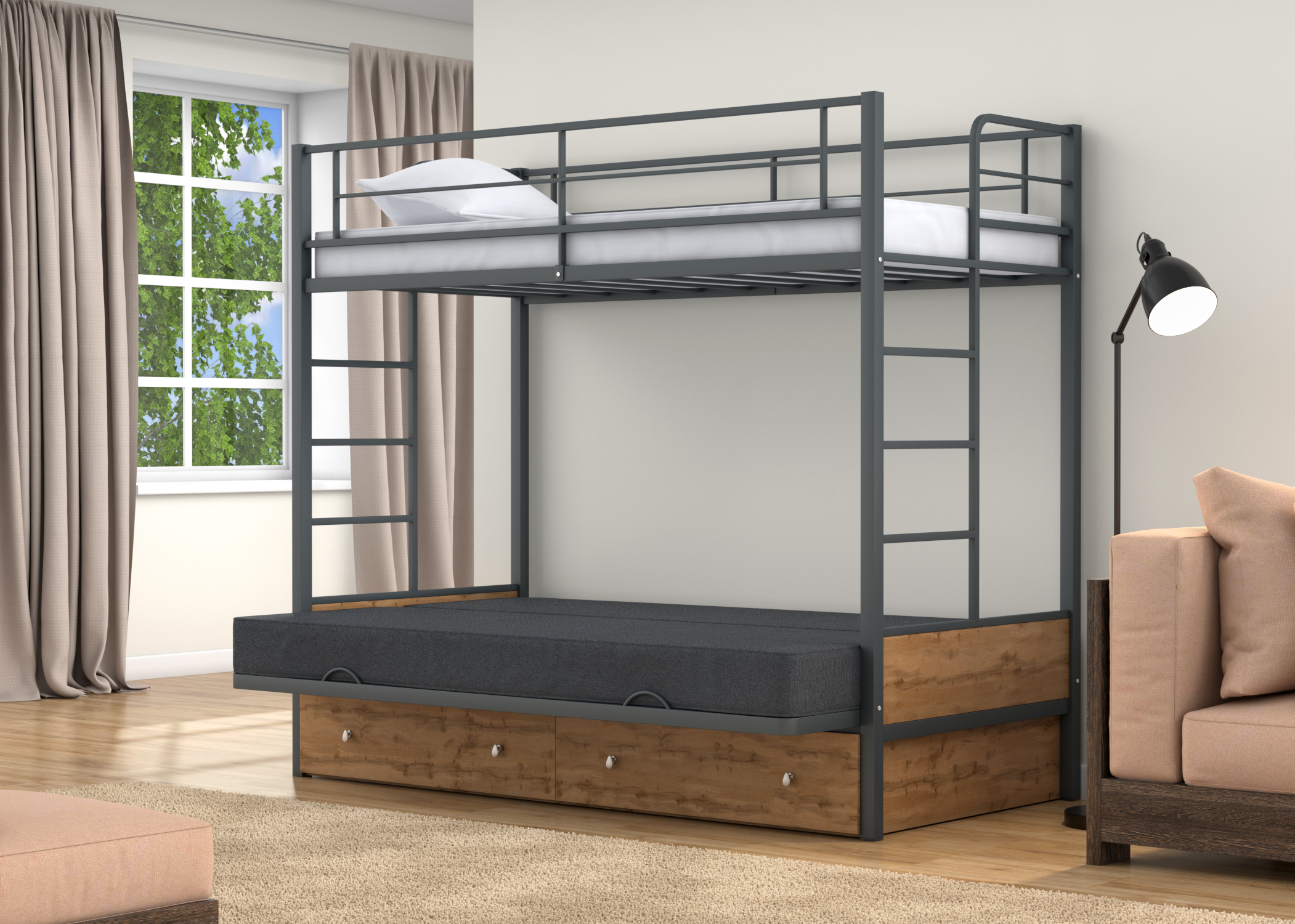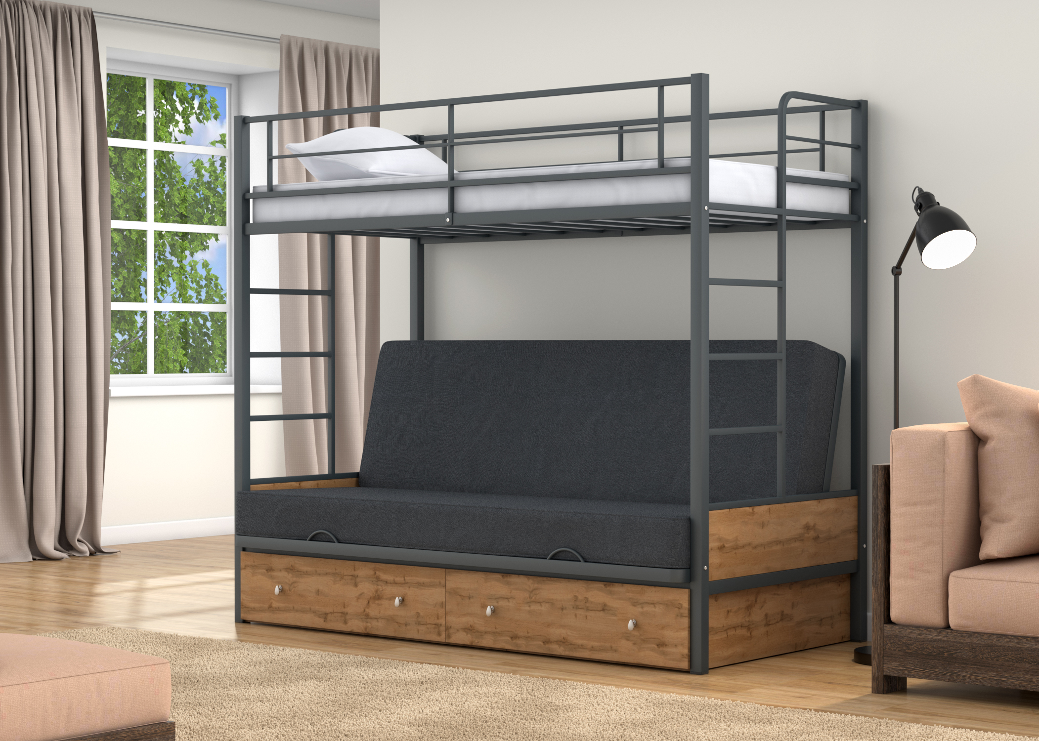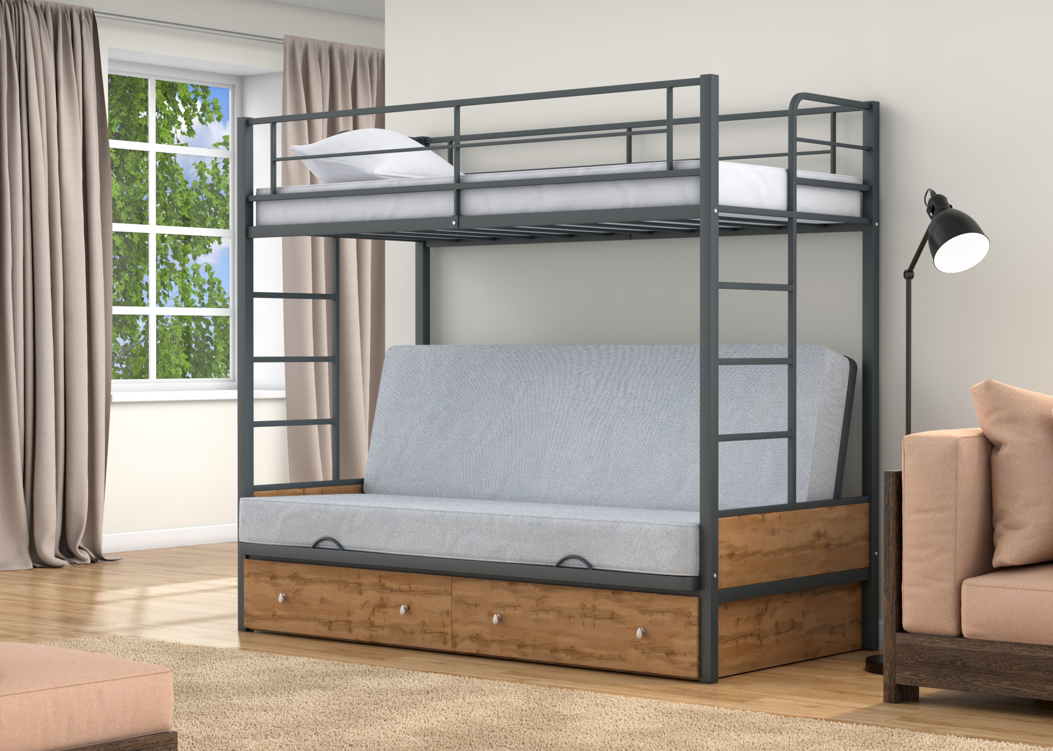 Практичная двухъярусная кровать. Порадовала быстрая доставка, привезли уже на следующий день. Сборка в день доставки. Надежный механизм дивана.
