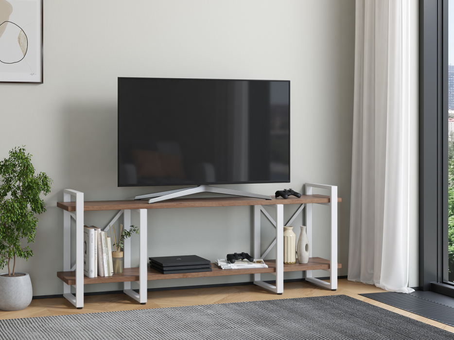 Тумба под ТВ Айсберг Лофт 160 белый (Дуб/крафт/табак)