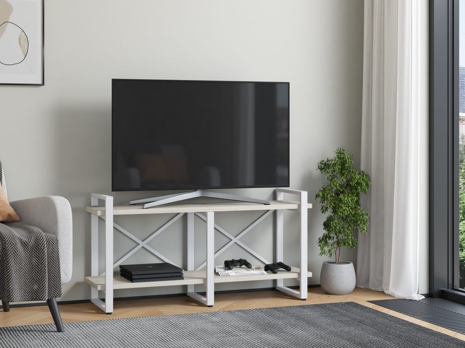 Тумба под ТВ Айсберг Лофт 120 белый (Дуб крафт белый)