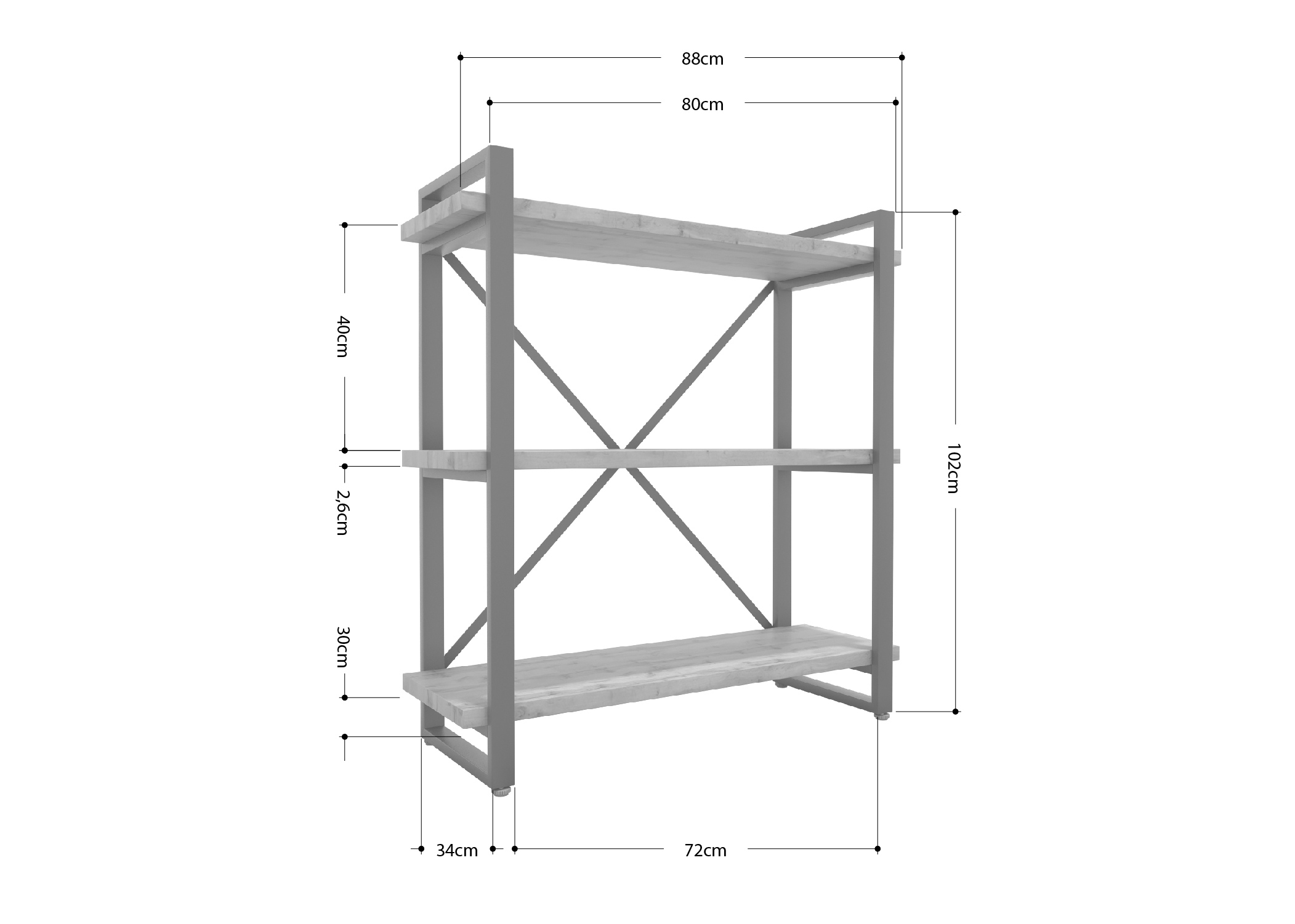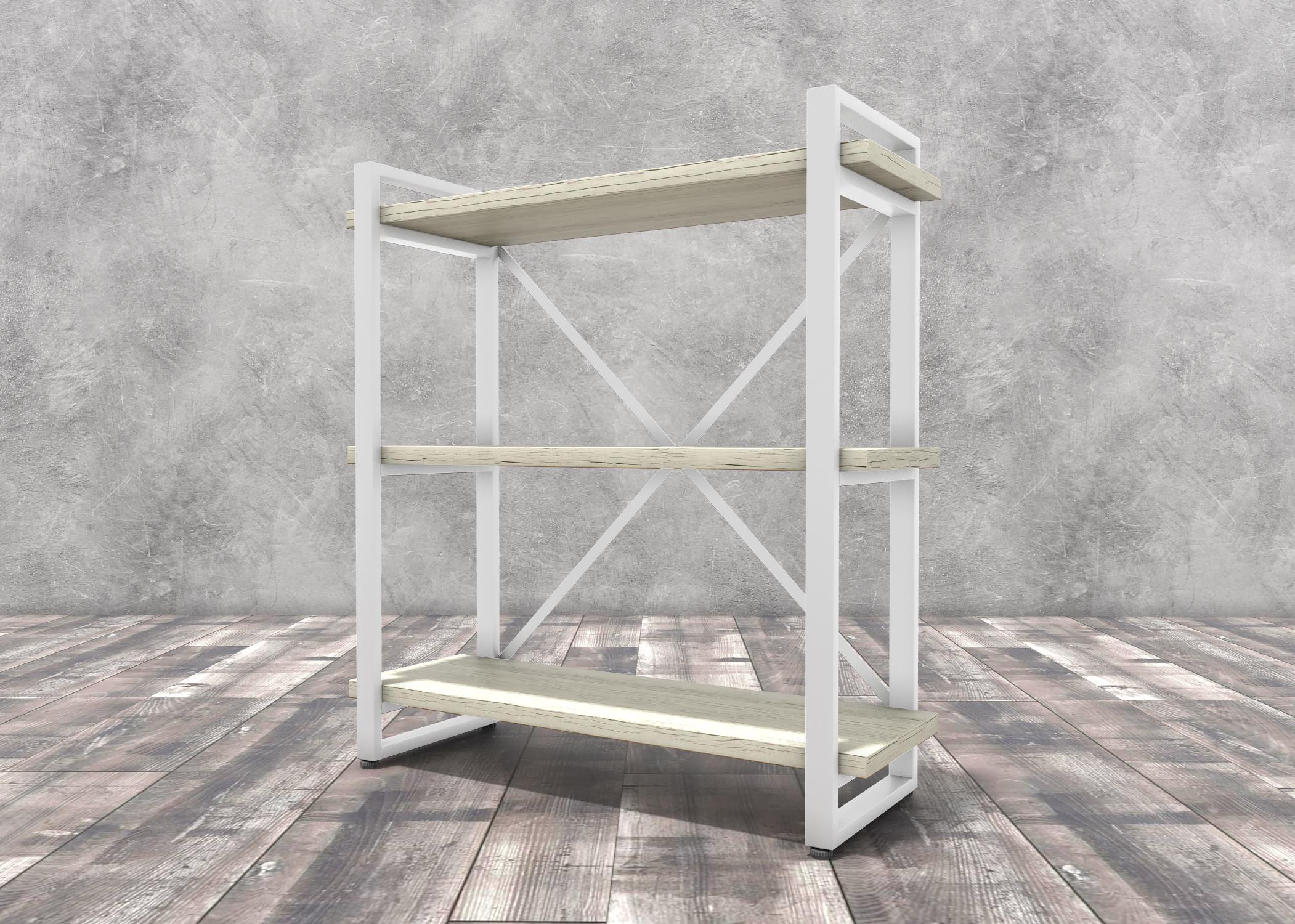 Стеллаж Айсберг в стиле лофт. Ширина 88 см, высота 102 см, глубина 34 см. Каркас выполнен из стального профиля 40х20 мм, толщина 1,5 мм, покрыт порошковой краской RAL 9003. Полки ЛДСП Egger 26 мм.