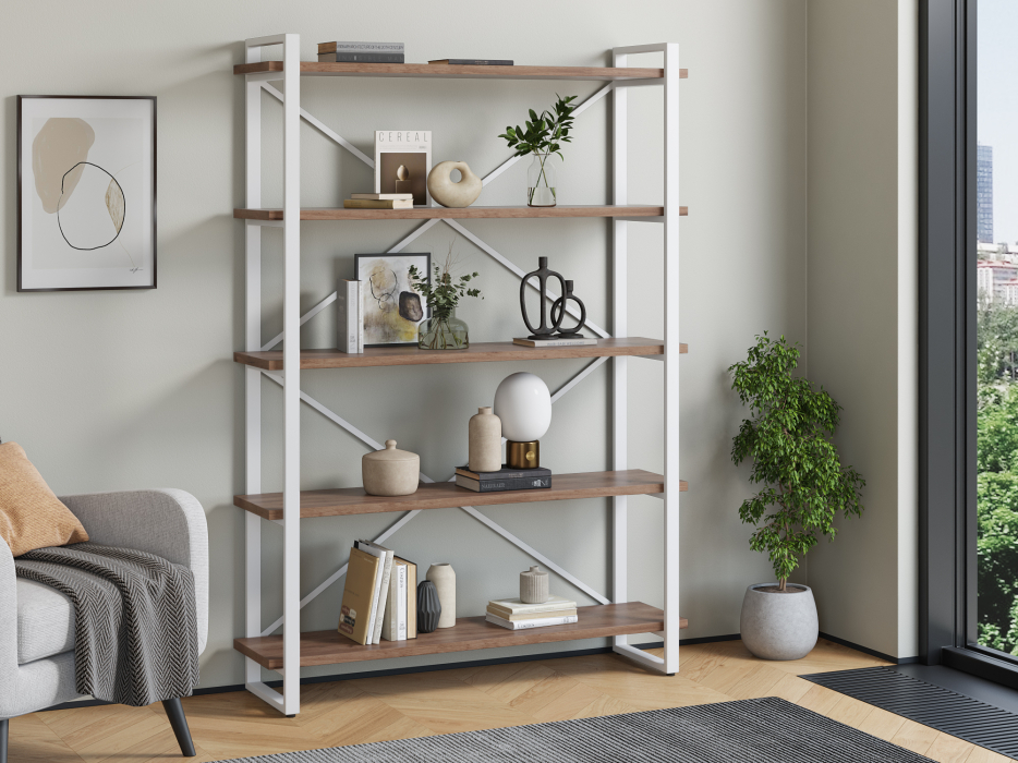 Стеллаж Айсберг Лофт 120х182-2 белый (Дуб/крафт/табак)