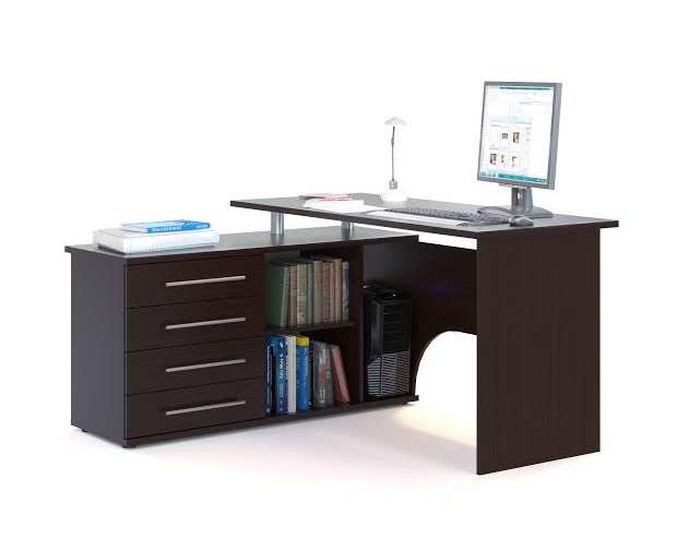 Функциональный компьютерный стол для кабинета. Предусмотрены полочки и выдвижные ящики в которые поместилось все, что нужно для работы. Покупкой полностью доволен.