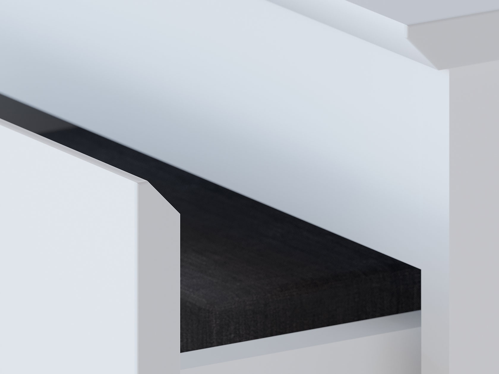 Широкий комод Т-3Р подойдет для меблировки самых разных комнат вашего дома.Отличительной особенностью модели является спил под 45° в верхней части фасадов, благодаря которому открывание ящиков осуществляется без ручек.