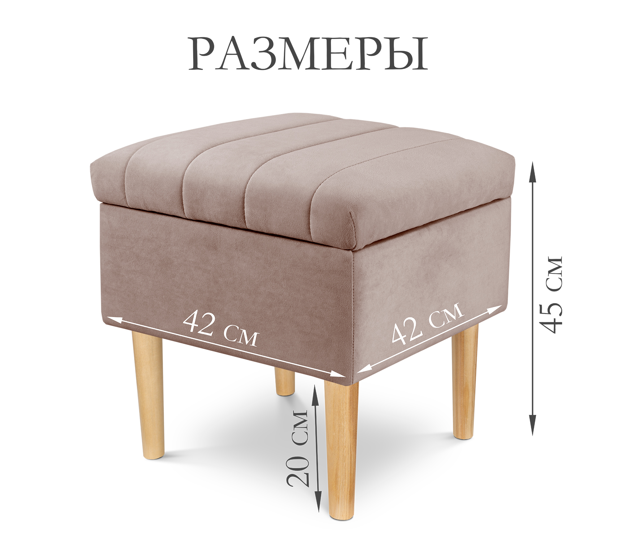 Многофункциональность: Такой пуф может служить как удобное сиденье, так и место для хранения вещей – от пледов до игрушек.