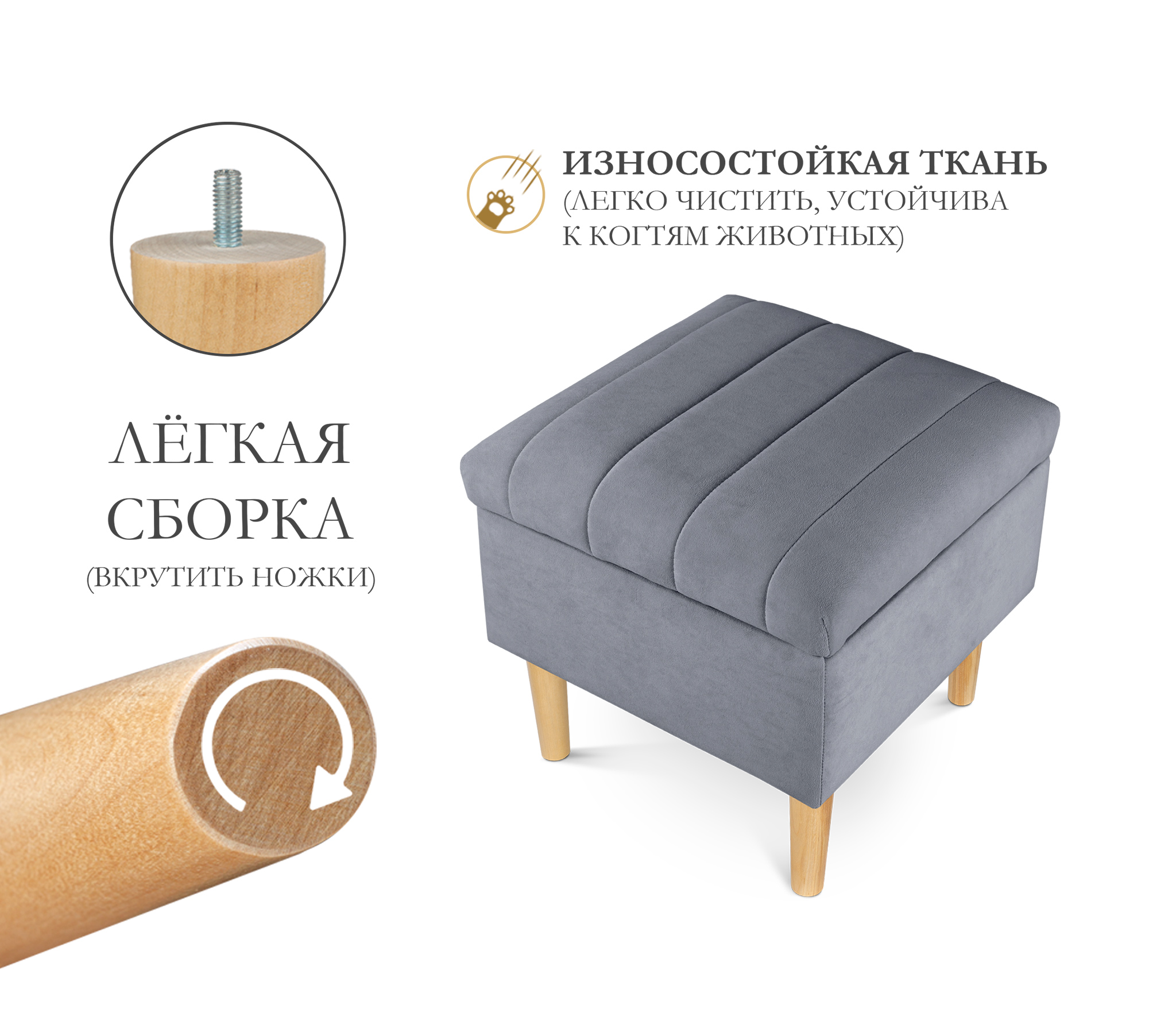 Пуф Париж с ящиком – это не только стильный элемент интерьера, но и функциональное решение для хранения. Он идеально подходит для небольших пространств, где важна каждая деталь.