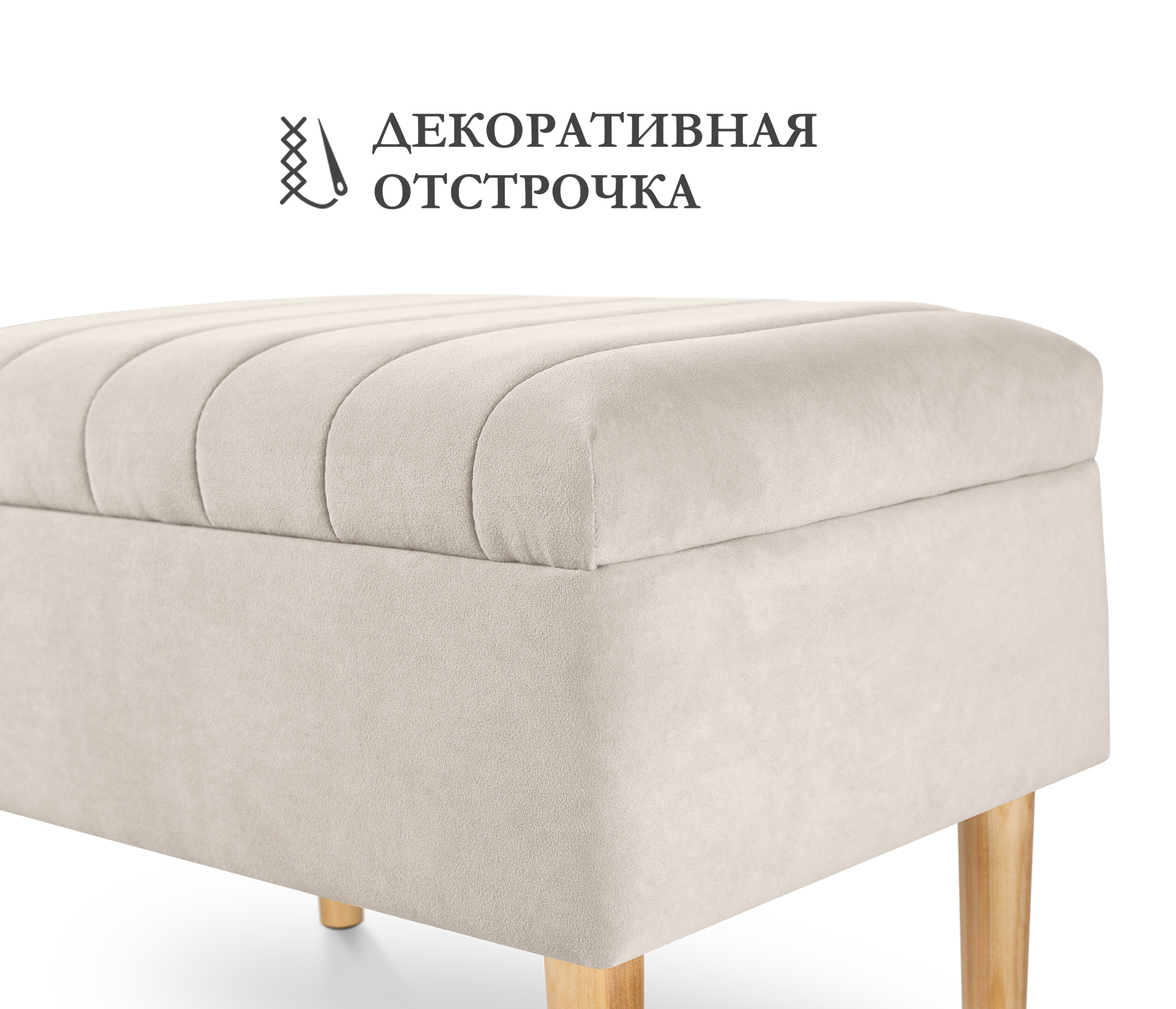 Многофункциональность: Такой пуф может служить как удобное сиденье, так и место для хранения вещей – от пледов до игрушек.