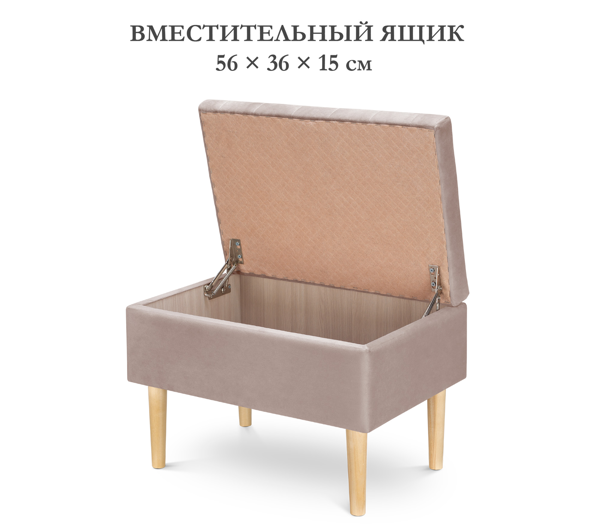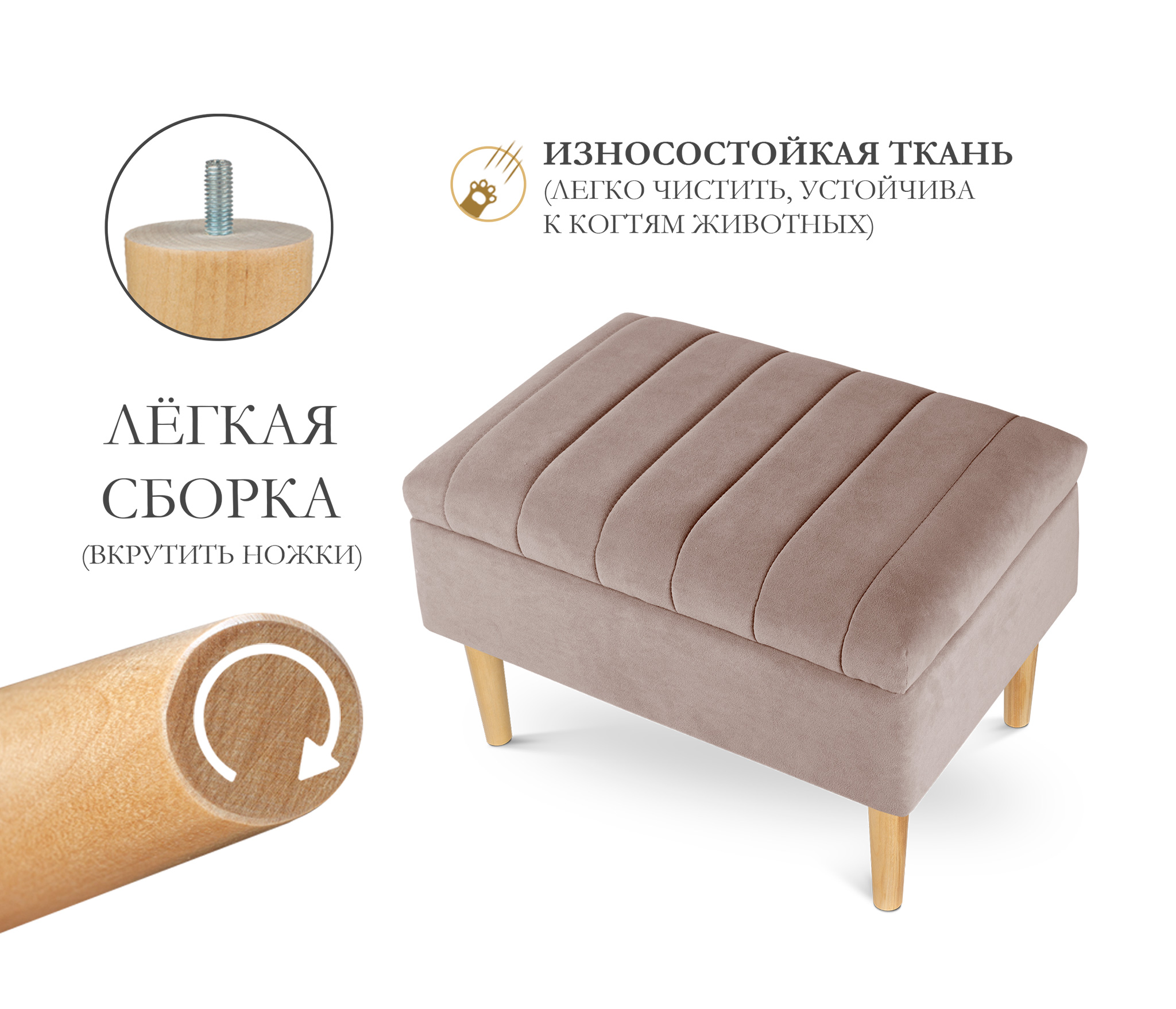 Многофункциональность: Такой пуф может служить как удобное сиденье, так и место для хранения вещей – от пледов до игрушек.